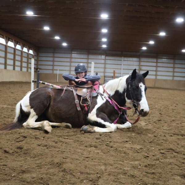 "AVAILABLE ON ONLINE HORSE AUCTION AT www DOT MagicHorseAuction DOT com BIDDING OPEN NOW thru TUESDAY | MARCH 3RD! BUY IT NOW AVAILABLE! *Final price will be determined on auction site* CONSIGNOR CONTACT INFO:ELLESSEE SCHWARTZ #248-390-6831 LOCATION:Howell, MI" We would like to introduce Sunshins Shastas Daisy or Sunshine as we call her at home. She is a registered 2018 (8 year old) APHA mare who stands a hair shy of 14.2hh. She is a beautifully put together tobiano. Sunshine has a delightful demeanor as she is a kind and loving horse who has been trained with all the bells and whistle's. Sunshine walk, trot, canters and knows her leads. Her transitions are effortless both upward and down. She both neck and direct reins. Sunshine has been used in 4/H and equestrian team and has competed in everything from trail to jumping to flags and poles. She is the type of horse who will teach you. She is easy to catch, load, haul, groom and tack. The most timid kiddos can do everything with her. Sunshine is happy to putz down a trail on a long rein and is not reactive of anything. She's also happy to jump around courses with beautiful flying changes. She is extremely versatile in her training and her ability. Kids as young as 6 and adults as old as 75 can ride and enjoy her and she will adjust to her rider. Sunshine has completed our full desensitization program and passed with flying colors. She even knows how to lay down on command! She's been trail ridden in the mountains of KY and the deep woods of Michigan. If you're looking for a true all around horse with stunning color, a good pedigree and loads of real world experience Sunshine is your girl! She lives in Howell MI 48855! Enjoy the video as we showcase several riders with a multitude of abilities. Call Ellesse 248-390-6831 for more information