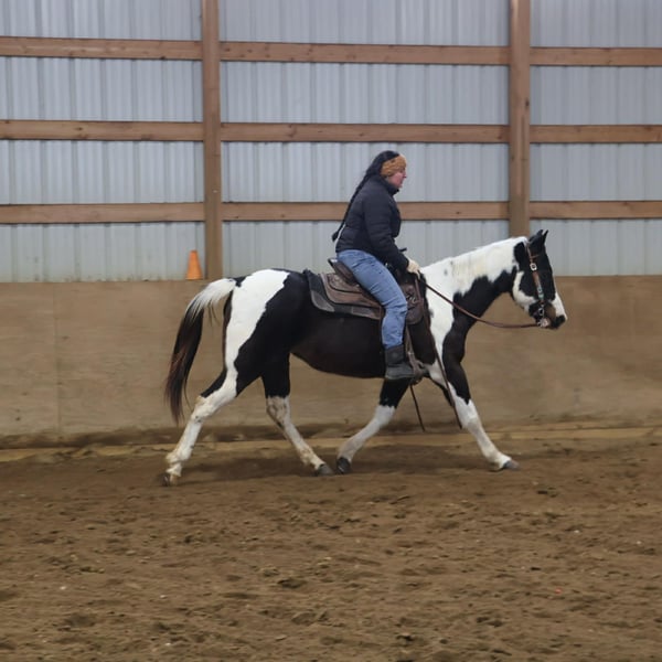 "AVAILABLE ON ONLINE HORSE AUCTION AT www DOT PlatinumEquineAuction DOT com BIDDING OPEN NOW thru SUNDAY | MARCH 22ND! *Final price will be determined on auction site* CONSIGNOR CONTACT INFO: Ellesse Schwartz 248-390-6831 LOCATION: Howell, MI We would like to introduce Sunshins Shastas Daisy or Sunshine as we call her at home. She is a registered 2018 (8 year old) APHA mare who stands a hair shy of 14.2hh. She is a beautifully put together tobiano. Sunshine has a delightful demeanor as she is a kind and loving horse who has been trained with all the bells and whistle's. Sunshine walk, trot, canters and knows her leads. Her transitions are effortless both upward and down. She both neck and direct reins. Sunshine has been used in 4/H and equestrian team and has competed in everything from trail to jumping to flags and poles. She is the type of horse who will teach you. She is easy to catch, load, haul, groom and tack. The most timid kiddos can do everything with her. Sunshine is happy to putz down a trail on a long rein and is not reactive of anything. She's also happy to jump around courses with beautiful flying changes. She is extremely versatile in her training and her ability. Kids as young as 6 and adults as old as 75 can ride and enjoy her and she will adjust to her rider. Sunshine has completed our full desensitization program and passed with flying colors. She even knows how to lay down on command! She's been trail ridden in the mountains of KY and the deep woods of Michigan. If you're looking for a true all around horse with stunning color, a good pedigree and loads of real world experience Sunshine is your girl! She lives in Howell MI 48855! Enjoy the video as we showcase several riders with a multitude of abilities. Call Ellesse 248-390-6831 for more information