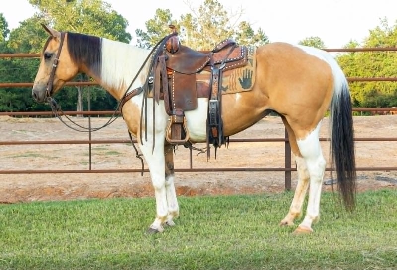 NLINE AUCTION Place your bids at www.PlatinumEquineAuction.com Starting Bid $3500 Auction ends June 29th, 2025 Need a new saddle? Check out White Rock Saddles on our website or Facebook! If safe, broke and honest are all things , Miami is the mare for you! Did I mention she is absolutely stunning?!?! Miami is a 14.3 hand 7 year old buckskin paint mare! She is perfect package of gentle, safe and flashy! She has been ridden extensively on the trails she will go anywhere you point her through the creeks, over the bridges and logs, etc! Not only is she your go to mare on the trails she also been used in the arena, she has a great walk, trot, lope and is soft and easy to ride. Miami has seen the all of the bright lights in town, traffic, and has even been rode in parades. She has a great personality and is in your pocket. She rides on a loose rein and stays level headed She has been ridden by all ages and levels of riders without any issue. Miami has been turned out with mares and geldings and gets along with everyone! Miami also has a gentle and friendly personality and great to be around. She has great ground manners. She is easy to catch, good to shoe, stands tied, etc. This mare has a super kind soul and loves people. She is quiet, honest and stays that way. If you’re looking for a mare that the whole family can enjoy, don’t miss this amazing mare! If you have any questions be sure to contact Sarah Kruger 605-759-0491 Located in Rusk, TX. ONLINE AUCTION Place your bids at www.PlatinumEquineAuction.com Starting Bid $3500 Auction ends June 29th, 2025 Need a new saddle? Check out White Rock Saddles on our website or Facebook!