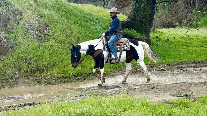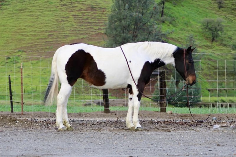 "AVAILABLE ON ONLINE HORSE AUCTION AT www DOT PlatinumEquineAuction DOT com BIDDING OPEN NOW thru SUNDAY | MARCH 8TH! *Final price will be determined on auction site* CONSIGNOR CONTACT INFO: Longhorn Ranch 831-537-1915 LOCATION: Paicines, CA Chanel 9-Year-Old Paint Mare • 14.3 Hands If sweetness, style, and personality could be wrapped into one very pretty package, you’d get Chanel. Chanel is a strictly gorgeous 9-year-old paint mare standing 14.3 hands, and calling her “just a doll” honestly doesn’t do her justice. She has that kind, soft expression, a beautiful coat that turns heads everywhere she goes, and the type of gentle presence that makes people fall in love fast. This mare is the definition of pretty and practical — the rare combination everyone hopes to find. Chanel has been enjoyed on the trails, used for ranch riding, and ridden down the road. She is steady, relaxed, and carries herself with that calm, confident attitude that makes every ride feel easy. The kind you can saddle up without a second thought and know you’re going to have a good day. Obstacles? She’s been there, done that. Tires, pool noodles, and the usual “let’s see what she thinks of this” challenges are all in her resume. Chanel approaches new things with curiosity instead of concern, handling it all with a quiet, willing mindset. Out on the trail, she’s sure-footed and happy to go wherever you point her. Rocks, different terrain, new places — Chanel stays honest, relaxed, and dependable. Down the road, she rides along like it’s just another stroll. In the arena, Chanel is soft, smooth, and correct through her gaits. She rides willingly, stays uncomplicated, and has that easy, forgiving feel that makes her suitable for a variety of riders. Whether you’re riding to unwind, improve your skills, or simply enjoy a beautiful mare, Chanel fits right in. And let’s talk about her personality — because it’s hard not to. Chanel is gentle, kind-minded, and an absolute pleasure to be around. She’s the type that’s easy to catch, easy to saddle, and easy to enjoy. Great for the farrier and currently barefoot . No drama, no attitude, no nonsense — just a genuinely nice mare. Pretty enough to admire, good enough to ride every day Brains, beauty, and a sweetheart disposition The kind that quietly becomes everyone’s favorite Chanel ties, hauls well, and handles everyday life like a lady. She’s the kind of mare that fits easily into a barn and makes herself right at home. If you’ve been searching for a paint mare that checks the “pretty,” “sweet,” and “fun to ride” boxes all at once, Chanel may be exactly what you’ve been waiting for. Longhorn Ranch Dina 831-537-1915 Located in Paicines, California Nationwide Shipping Available We’re happy to assist in arranging safe, reliable transportation anywhere in the United States.