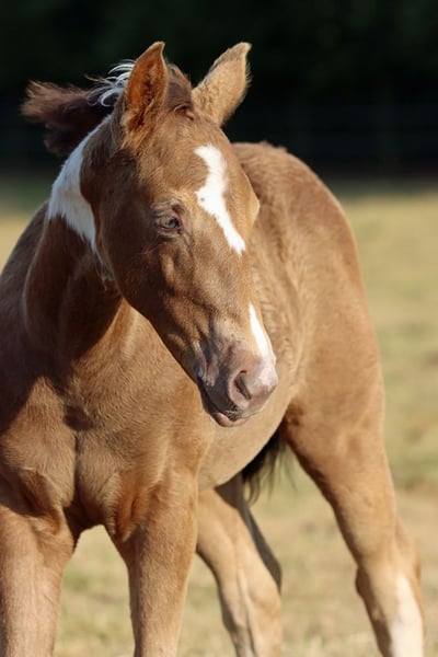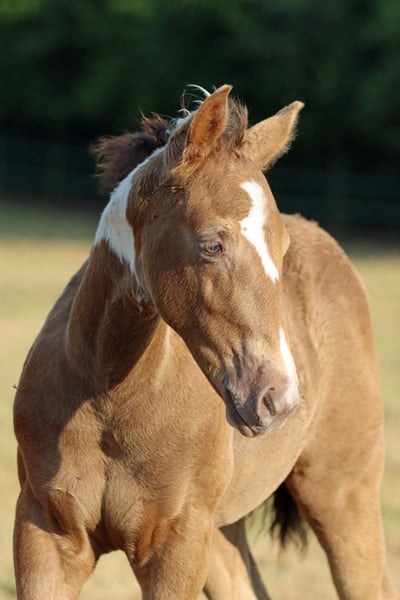 CHEYENNES VUDUTELLA Classic Champagne Tobiano APHA mare. Born: 24.05.2025 Expected height approx. 150 cm 7 Panel N/N Ee aa CHch Tt