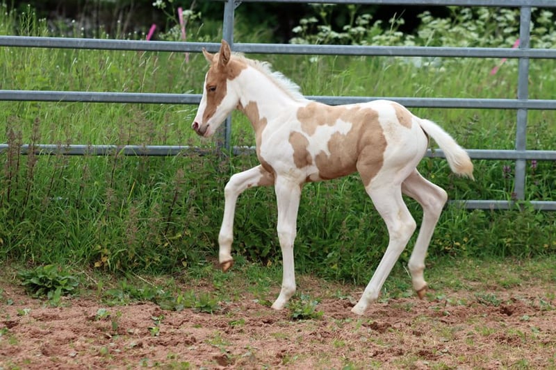 CHEYENNES HARRAHS Palomino Tobiano APHA Mare Born: 20.05.2025 Expected height approx. 155 cm 7 Panel N/N ee aa CRcr Tt