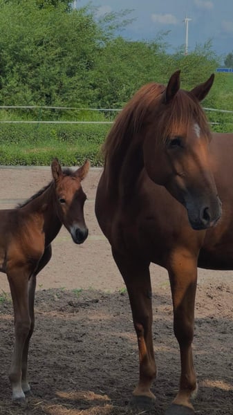 Paint Horse Hengstjährling – vielversprechender Nachwuchs mit tollem Charakter Zum Verkauf steht ein wunderschöner Paint Horse Hengstjährling, geboren am 01.06.2025, in attraktiver Bay-Farbe. Der junge Mann überzeugt nicht nur durch seine ansprechende Optik, sondern vor allem durch sein ausgeglichenes, menschenbezogenes Wesen. Er ist haftführig, kennt den Schmied und zeigt sich dabei stets brav und kooperativ. Im täglichen Umgang ist er sehr zutraulich, neugierig und verspielt. Besonders genießt er Aufmerksamkeit und ausgiebige Krauleinheiten, wodurch er schnell eine enge Bindung zu seinen Menschen aufbaut. Storm wächst artgerecht in der Herde auf und entwickelt sich zu einem freundlichen, neugierigen und aufgeschlossenen Jungpferd mit viel Potenzial – egal ob später im Freizeitbereich, als zuverlässiger Partner oder Turniersport. Mit seinem lieben Charakter, seiner guten Aufzucht und seiner soliden Abstammung bringt er beste Voraussetzungen für eine erfolgreiche Zukunft mit. Er wird nur in gute, fördernde Hände abgegeben, wo er weiterhin liebevoll aufwachsen und gefördert werden kann. Bei ernsthaftem Interesse freuen wir uns über eine Nachricht oder einen Anruf, für weitere Informationen oder um ein Kennenlernen zu vereinbaren. Er kann auch gerne noch zur Aufzucht bei eingestellt werden. Storm wir ein vmtl Stockmaß ca 1,52. Abstammung: Dame: Solid Sorrel Paint Horse Stute SF Docs Chili Sire: gekörter, zweifarbiger Paint Horse Hengst Apachs Smarty Spots
