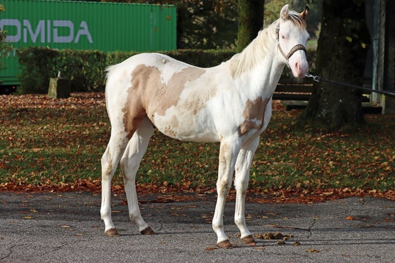 FHB CHIC WIMPYS GUN Étalon APHA, couleur dunskin Splash et Tobiano Né le : 07/03/2025 Taille finale d'environ 150 cm