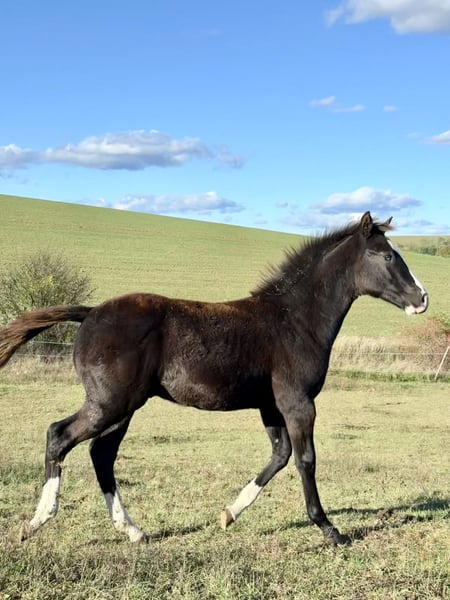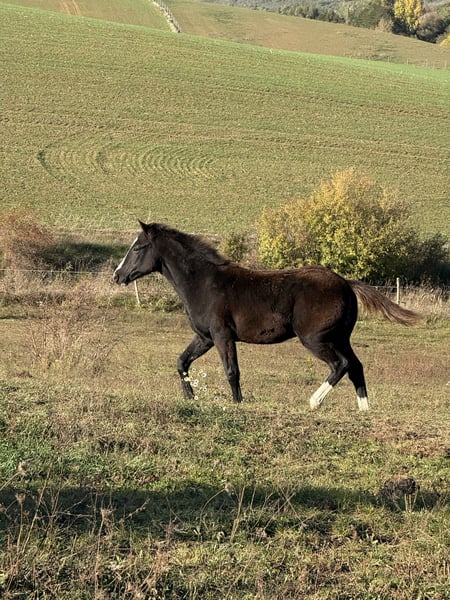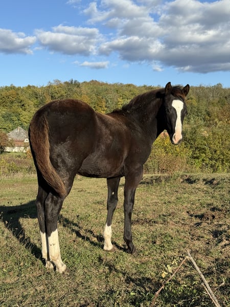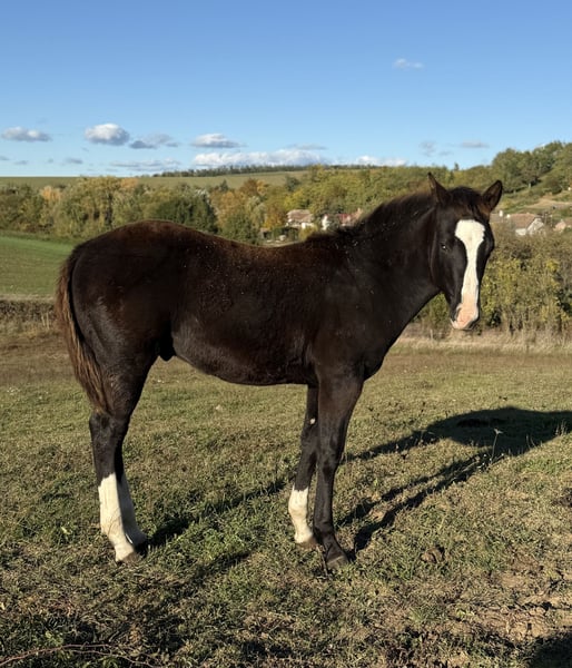 Great opportunity to own the Black jewel. American Paint Horse Colt, Born in 5/2025 Sire: EPR Obsession (USA import) 7 panel n/n All Time Fancy x Miss Lucky Trend ROM, European champion Stallion, Grand and reserve champion…… Dam: Princess of darkness, 6 panel n/n (Hollywood Dun it, Shining spark, Hello Shiner … on her pedigree) Friendly, good minded colt, compact and well-balanced build. Healthy, no injuries, vaccinated, devormed. Partial blue eye. He is well-suited for a variety of disciplines and is eager to excel in the show arena or he can make the best hobby horse for future owner. This boy is an exceptional choice so Don’t miss the opportunity to bring this remarkable horse into your stable. Contact me for more information.