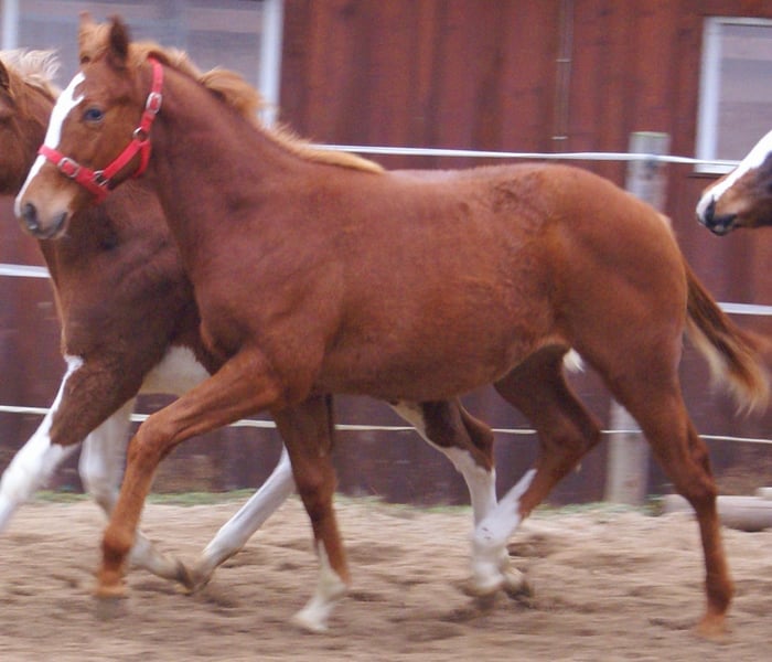 Schicker Paint Horse Hengstjährling, toller Body mit schöner Bewegung, weit entwickelter Strahlemann, wird groß und kräftig, korrekt und wüchsig, auffällige Blesse, menschenbezogen, volles Papier