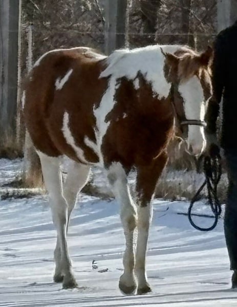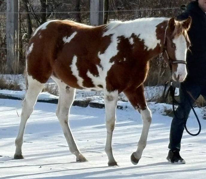 SPOOKSWHIZINHOLLYWOOD "Woody", a sorrel Tovero Paint stallion born in January 2025. His sire, IFWHIZSWEREGUNS, a full brother to the NRHA $9 million sire and the first NRHA Triple Crown winner, SPOOKS GOTTA WHIZ, has an LTE of $118,636. His dam, W GUNSMOKES SPRING, holds an ROM in Amateur Ranch Riding and has earned several bronze medals at the European Paint Horse Championship in Ranch Riding. Her first foal, Toochicforhollywood, has an ROM in Green Ranch Riding and has placed in money at every IRHA competition (Ranch Riding, Ranch Trail, and Ranch Rail Pleasure). Woody’s pedigree, conformation, markings, and athleticism make him well-suited for various ranch classes as well as reining. Thanks to his lovable character, he will also be a reliable companion for horse enthusiasts beyond the show ring. 7-panel N/N. He can be transferred immediately with APHA papers and a horse passport to his new home. https://www.allbreedpedigree.com/spookswhizinhollywood Please contact via email: wcs@gmx.at