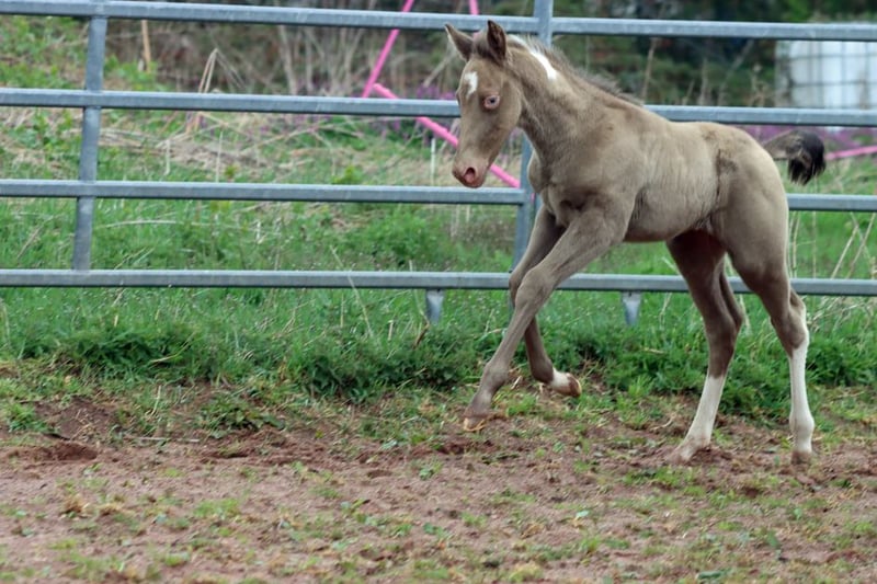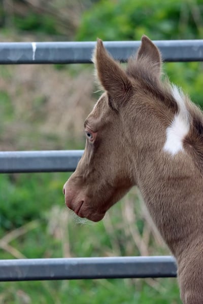 CHEYENNES VUDU CASH Classic Champagne Tobiano APHA Hengst. Homozygot Champagne und Black Geboren: 14.05.2025 Endgrösse ca 153 cm 7 Panel N/N EE aa CHCH Tt