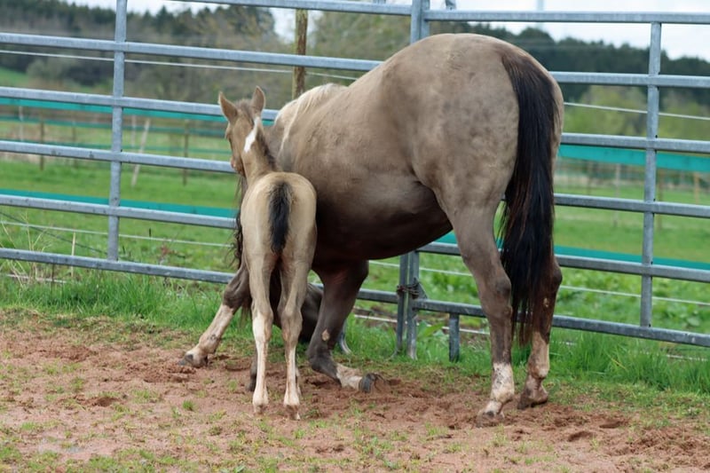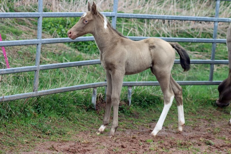CHEYENNES VUDU CASH Classic Champagne Tobiano APHA stallion. Homozygous Champagne and Black Born: May 14, 2025 Expected height approx. 153 cm 7 Panel N/N EE aa CHCH Tt