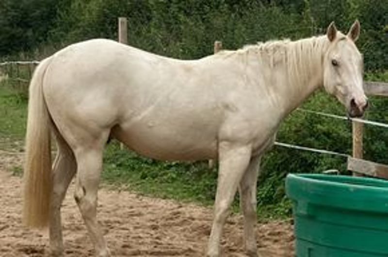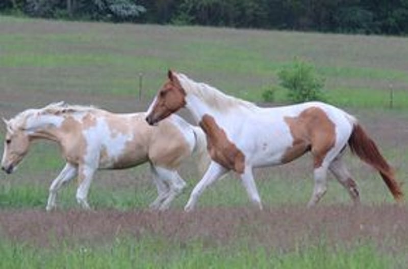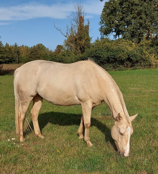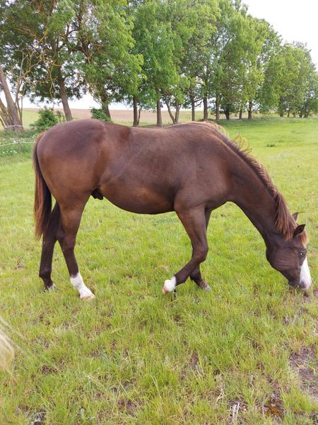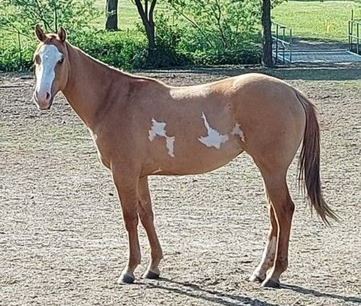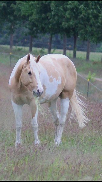 Expressive Sonny Dee (APHA, PHCG) steht ab sofort Ihrer Stute zur Verfügung. Er ist gesund, völlig klar im Kopf und lässt sich problemlos auch von Kindern händeln. Hier steht er neben einer Stuten- Fohlen-Herde und ist dabei immer äußerst brav. Der Hengst vererbt nicht nur Sonderfarben sondern auch tolle Charakterfohlen. Sein Nachwuchs kann sich sehen lassen (Bilder zeigen einige seiner Nachkommen). Alle zeichnen sich durch ihren einzigartigen Charakter aus: sie sind sehr menschenbezogen, immer cool, alle sind gesund und die bereits gerittenen Nachkommen sind völlig problemlos in der Ausbildung mit viel "will to please". Einige sind bereits erfolgreich im Amateursport gestartet. Der Hengst deckt nur im Natursprung (an der Hand) und ist dabei ein Charmeur. Er ist ein 1,53m großer Allrounder in der Farbe palomino-tovero (die Flecken sind auf der anderen Seite), heterozygot für tob, dun, creme, außerdem 5-Panel n/n und n/olws. Ihre Stuten können Sie gerne vor Ort lassen. Sie werden dort bestens betreut. Eine aktuelle Tupferprobe der Stute ist notwendig und sie sollte hinten keine Eisen haben. Fremdrassen zahlen 400€ und Paint Horse 500€, jeweils mit Lebendfohlengarantie. Da der Hengst im Zuchtbuch der APHA als auch des PHCG eingetragen ist, erhält ihr Paint Horse Fohlen auf Wunsch Papiere. Bitte nur telefonische Anfragen.