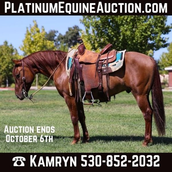 ONLINE AUCTION Place your bids at www.PlatinumEquineAuction.com Starting Bid $3500 Auction ends October 6th, 2024 Need a new saddle? Check out White Rock Saddles on our website or Facebook! Meet Corndog the Wonder Pony who is a 8 year old, 13.2H, Dun Quarter Pony. Looking for the perfect all-around pony? Look no further than Corndog! This super broke pony is handy in the bridle, spins, stops, side passes, and works off your legs like a dream. He’s a trail champion, confidently crossing creeks, ponds, and bridges, handling logs and steep hills with ease. Corndog has been through every obstacle including teeter totter bridges, pool noddles, tarps, swaying bridges and never bats an eye—he’s not spooky and will go anywhere you ask him to. Many children have ridden him, practicing everything from goat tying dismounts to running barrels and poles. He even tracks the roping dummy with calm precision, taking everything in stride. He stands tied, to be saddled, bathed, groomed. If you need a pony that can do it all and go all day, Corndog is the one for you! Feel free to contact us for any further questions at KW Ranch and Performance Horses 530-852-2032. Located in Pleasant Grove, CA. ONLINE AUCTION Place your bids at www.PlatinumEquineAuction.com Starting Bid $3500 Auction ends October 6th, 2024 Need a new saddle? Check out White Rock Saddles on our website or Facebook!