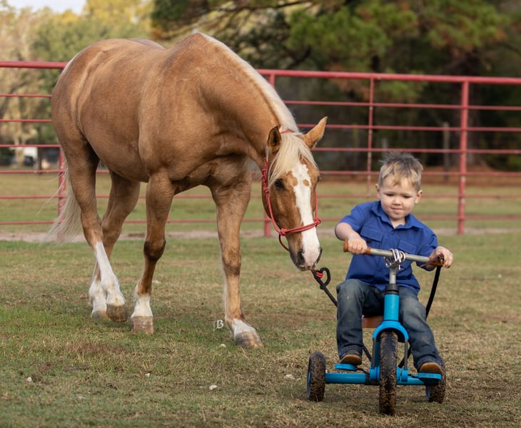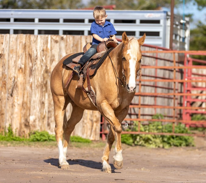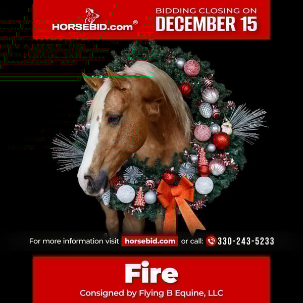 🎄𝐓𝐇𝐄 𝑯𝒐𝒍𝒊𝒅𝒂𝒚 𝐂𝐋𝐀𝐒𝐒𝐈𝐂🎄 Happening now thru MONDAY | DECEMBER 15th - Available EXCLUSIVELY on HorseBid's website! For more details and to register visit: www.Horsebid.com CONSIGNOR CONTACT: Flying B Equine, LLC 330-243-5233 LOCATION: Troy, TX BREED: AQHA REGISTERED: Yes REGISTERED NAME: Spot A Fire Water COLOR: Palomino HEIGHT: 14.2 AGE: 9 GENDER: Gelding Spot A Fire Water AKA “Fire” is a 2016 AQHA palomino gelding with the perfect amount of white, that stands 14.2HH. By a son of the great $6.6 Million dollar PE sire “SPOTS HOT”. Fire is a very well trained, versatile gelding that has packed all levels of riders here at our house! Fire is used in our lesson program for youth learning to ride and canter, and handles their inexperience with confidence! From the arena to the trails, he is the best and will boost his rider’s confidence! Fire goes anywhere you point the reins without hesitation, through water, over obstacles, and any type of terrain. You can jump on him and go enjoy an evening ride bareback and in a halter with no problems! He has absolutely no barn sourness, and walks back to our barn bridle less and in no rush! We have used Fire to move our cattle, and he loves watching a cow! He would be a great addition to someone wanting to play in the sorting / penning world. In the arena, this gelding to us is as smooth as butter! He has a soft trot and a rocking chair lope. Great transitions and easy cues, makes him so easy to enjoy. Our 3 year old little boy rides him around in the roundpen and arena by himself, surely you can too! He will also pivot on his haunches, side pass over logs, etc. He could easily go show in the Ranch classes! He would be perfect for a youth to bring up and show competitively! He has always been great with us, whether he had a month or a week off! Back at the barn, he is a barn favorite! He is the first to meet you at the gate, and is a great pasture mate! He stands for the farrier and picks up all 4 feet with ease! He has impeccable ground manners and will stand all day long for the kiddos to groom him! Our 3 year old loves to lead him around on his tricycle! He is very clean in his stall and has no weave or crib. Fire has never shown any negative behaviors in our program and has been a true joy to ride and own over the last several months! Fire is located with us in Troy, Texas. (Please notice our location change, as we have recently moved from Lufkin, to Troy, Tx) . Our pap We can help arrange shipping and buyers are welcome to try the horse in person as well. Fire is UTD on everything, we have PPE available, and you are welcome to do your own! All paperwork is in hand, and BOS will be signed within the exchange. You are more than welcome to review all of Fire’s information including PPE’s, numerous videos, records and more photos on our website! Flyingbequine.com/fire Please call Bailey with any questions! (330) 243-5233