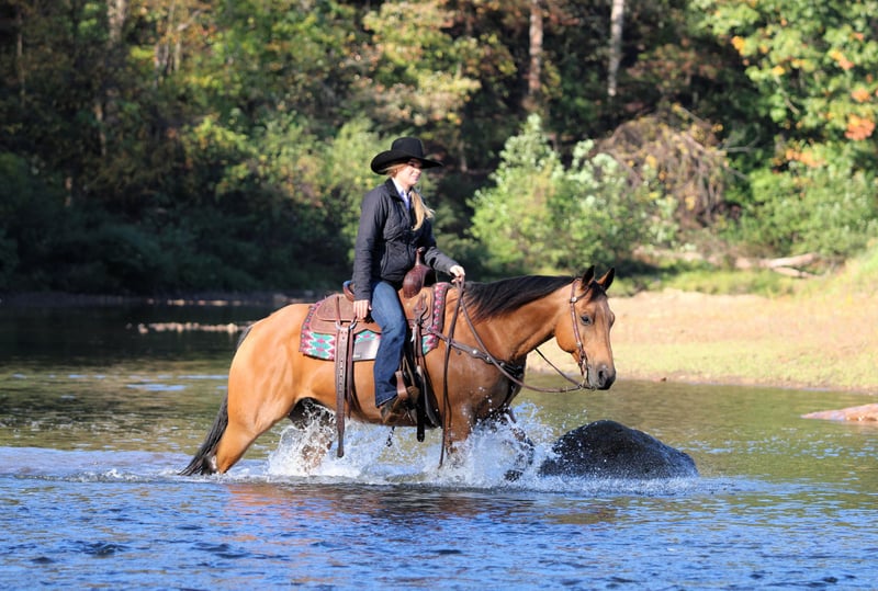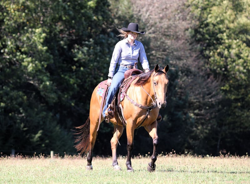 ♦️ 𝐭𝐡𝐞 𝐀𝐌𝐄𝐑𝐈𝐂𝐀𝐍 𝓕𝓪𝓵𝓵 𝓒𝓵𝓪𝓼𝓼𝓲𝓬 ♦️ Happening now thru MONDAY | OCTOBER 20th - Available EXCLUSIVELY on HorseBid's website! For more details and to register visit: www.Horsebid.com CONSIGNOR CONTACT: Rolling Rock Farms 814-924-3828 LOCATION: Miola, PA BREED: Quarter horse REGISTERED: No COLOR: Buckskin HEIGHT: 14.3 AGE: 9 GENDER: Gelding Ziggy is a 9-year-old buckskin Quarter Horse gelding standing 14.2 hands tall. He’s the kind everyone notices with his beautiful golden coat, kind eye, and balanced build that turns heads wherever he goes. Ziggy is the total package. broke, gentle, versatile, and always willing to please. He’s the kind of horse you can enjoy in the arena one day and take down the trail the next with complete confidence. In the arena, Ziggy rides around collected and soft in the bridle, holding a pretty headset at all gaits. He moves easily off leg pressure, pivots on his hind end, and has a true one hand neck rein. He catches both leads, transitions smoothly, and lopes off with ease every single time. Ziggy has also been ridden English and will trot through poles and small obstacles quietly and willingly. He’s been lightly loped through the barrel pattern and shows the kind of mind that could go in any direction such as ranch riding, playdays, or just a reliable all around partner. Out on the trail, Ziggy is solid, dependable, and sure footed. He’s been ridden through all kinds of terrain and doesn’t hesitate or spook. He will go out alone or with a group and is the same horse every ride, calm, confident, and ready to go wherever you point him. He’s seen big farm equipment, dogs, and goats. Ziggy has even carried the American flag and been used to pony colts, showing his steady nature and good attitude. He’s the kind that can go all day and still meet you at the gate with his ears up and that friendly, loving personality. Ziggy is great to be around on the ground as well. He’s extremely gentle and in your pocket, always happy to come up to you in the pasture, especially if you shake a grain bucket. He stands quietly in the cross ties to be saddled, bathed, and groomed, and has excellent manners. In the pasture, he’s lower to middle in the pecking order and does equally well kept in a stall or turned out on pasture. He is currently wearing four shoes and sells with a current negative Coggins and rabies vaccination. If you’re looking for a broke, beautiful, and trustworthy gelding that’s just as good in the arena as he is out on the trail, Ziggy checks every box. He’s the kind you’ll look forward to riding every single day. If you would like to check out Ziggy or have any questions please feel free to contact Ethan at (814) 924-3828
