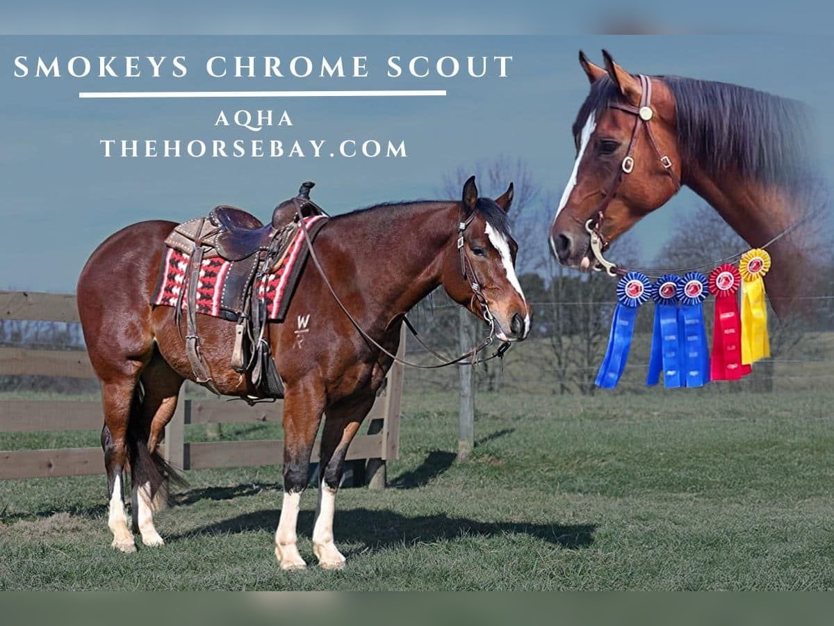 OPEN BIDDING ON THEHORSEBAY,COM. SALE ENDS ON 01/22. More information is available on the website, including an UTD vet inspection, Coggins, video, images, and the owner's contact information to ask questions, request information, or make arrangements to come to visit. Take a look ladies and gentlemen, we are proud to bring to you this beautiful bay Gelding we call Scout. Scout as we call him is a 2016 Registered AQHA Bay Gelding that stands 15. 1 hands tall and weighs 1,150. Scout is just not your average plain colored Bay Horses he’s a Bay with Chrome! 4 white socks and a blaze! This guy is super safe and very quiet for anyone to hop on and go ride – he will keep his rider safe. Scout is the ideal trail horse or go ride with your friends once a week with kind of horse. Or if your cousin from the city comes, he’s the horse you can put them on, and he will take care of them all day long. Scout is very easy-going, very spook free and sweet minded. He has a great personality and always a willing attitude. Scout is great for the farrier and loads and trailers well. He’s always easy to catch out in the pasture and gets along great with other horses. He has a one hand neck rein and bows, knows how to side pass, and always picks up the correct leads when cantering in a circle. If you’re looking for a safe family style horse to play and have fun on out all by himself walking down the trails or in a group or show in 4H classes or go show off a pretty horse with your friends on a Sunday afternoon.