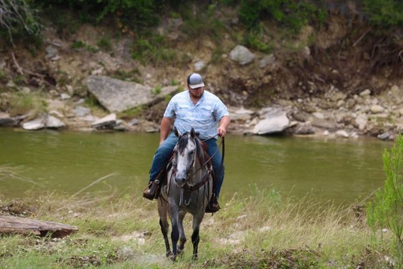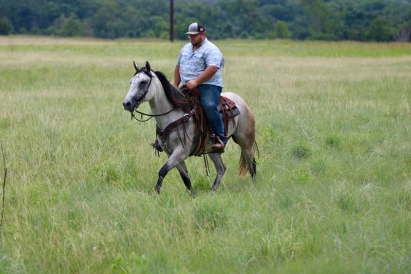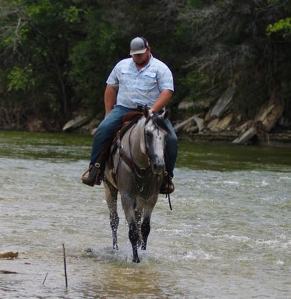 ONLINE AUCTION PLACE YOUR BIDS AT PLATINUMEQUINEAUCTION DOT COM $3500 STARTING BID AUCTION ENDS JUNE 30TH The first thing people notice about Aspen Air is that he’s gorgeous. He is shapey with a big soft kind eye and he has a cool ranchy look about him that always gets attention. He’s also a perfect size, easy to mount with great substance and presence, along with sturdy bone allowing him to go all day long. But Aspen is not just another pretty face. This guy does it all. He has been all over the country. As a result, Aspen has been exposed to everything under the sun. He ropes and holds cattle for doctoring; sorts and pushes cattle, gate sorts and moves pairs; and is slowly starting to come out of the box on the head side. With this horse and a good stock dog, you can load a pot full of cattle all by yourself. He is brave, confident, handy, and athletic. He’s also not all work and no play. Aspen has all the skills to be your best trail buddy or family horse. He will cross water, go over logs, through deep brush, and navigate bridges without having to ask him twice. He rides out alone or in a group with impeccable manners. He will tolerate any human shenanigans trail riding may bring out. In a saddle or bareback, he doesn’t care. Completely unbothered around dogs, vehicles, farm equipment and UTVs, even when they invade his personal space. He will pull your kids or grandkids around in a sled during winter or be their best riding mount. Aspen is a beautiful mover with easy transitions from walk-trot-lope/canter. Stops on a dime, has a cute turnaround on him. Broke like one should be. Loads and unloads without drama. You can pick up all 4 feet easily. Good in a stall or in a pasture with other horses. He stands 15.1hh tall and weighs 1200lbs and just 8 years old! Aspen has been 100% healthy, 100% sound and 100% sane. Be sure to check out his video. It is long, but worth the watch. This horse is one in a million and we want him to find a one in a million home! Located in Stephenville Texas We can help arrange hauling anywhere in the US, Hawaii or Canada! Please call or text Makenna Hartzel 817-659-3778.