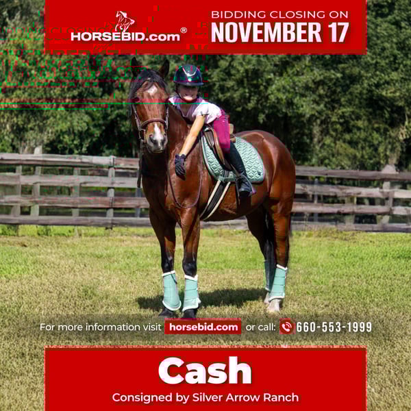 🎲𝓽𝓱𝓮 𝐑𝐈𝐃𝐄𝐑'𝐒 𝓒𝓱𝓸𝓲𝓬𝓮🎲 Happening now thru MONDAY | NOVEMBER 17th - Available EXCLUSIVELY on HorseBid's website! For more details and to register visit: www.Horsebid.com CONSIGNOR CONTACT: Silver Arrow Ranch 660-553-1999 LOCATION: Ocala Florida BREED: Quarter horse REGISTERED: No REGISTERED NAME: Cash COLOR: Bay HEIGHT: 15 AGE: 10 GENDER: Gelding Are you in search of a reliable trail partner? Look no further than Cash! This handsome 10-year-old gelding stands 15 hands and is ready to take you on countless adventures. Cash has been trail ridden extensively through the stunning Colorado mountains and has successfully packed riders of all experience levels, making him perfect for families or those new to trail riding. He has been ridden Western, bareback, and English, showcasing his versatility and suitability for various riding styles. In addition to his trail experience, this gelding has completed obstacle courses flawlessly, demonstrating his confidence and ease in different environments. He is not only dependable but also a sweet companion. He’s easy to catch and thrives in the barn, showing excellent temperament around people. His gentle nature combined with his experience makes him the ideal choice for anyone looking to enjoy the great outdoors on horseback. Contact us today for more information or to schedule a visit. Make this wonderful gelding a part of your equestrian journey! 660-553-1999