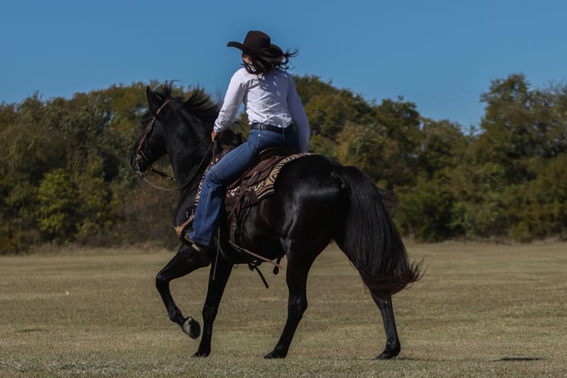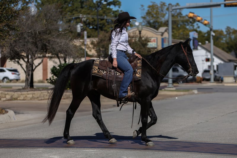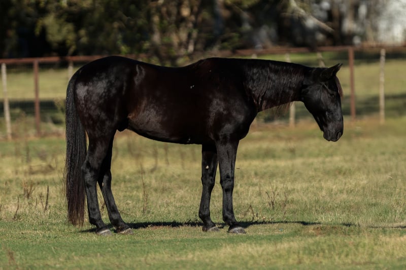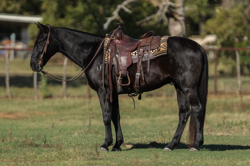 🎲𝓽𝓱𝓮 𝐑𝐈𝐃𝐄𝐑'𝐒 𝓒𝓱𝓸𝓲𝓬𝓮🎲 Happening now thru MONDAY | NOVEMBER 17th - Available EXCLUSIVELY on HorseBid's website! For more details and to register visit: www.Horsebid.com CONSIGNOR CONTACT: Hailey Hutchison 682-459-7115 LOCATION: Joshua TX BREED: Quarter Horse REGISTERED: No REGISTERED NAME: Deets COLOR: Black HEIGHT: 15 AGE: 9 GENDER: Gelding Affectionately known as “Deets” from the iconic- Lonesome Dove! Deets: “Cheerful in all weathers, never sherked a task, splendid behavior”.🖤 9 years old, 15 hands tall, and a trustworthy black gelding. Always happy to see his person, easy to catch, perfect gentleman- stands quietly tied to groom, tack up, get on, and bathe. Deets is extremely kind hearted and will win your heart over with his genuine soul.🙌🏻🥹 Solid, solid, solid- steady eddy! Deets greets everyday with a willing attitude and the kindest demeanor. Honest one hand neck rein, picks up both leads, smoothest rocking chair short lope, and goes absolutely anywhere he’s pointed- they don’t get any easier to ride than him! Laid back in a busy town atmosphere, unfazed by traffic, atvs, flags, and other livestock. A trail rider delux, and SO fun out on the trails! If safe, kind, reliable, user friendly, and extra gentle are at the top of your list, Deets is your man! Loves attention and deserves to be loved on everyday. Safe for any level rider, and would make the entire family happy! 💯❤️💌 Up to date on farrier, coggins, deworming, and dental. 🩺 📫Joshua, TX - happy to help arrange shipping!