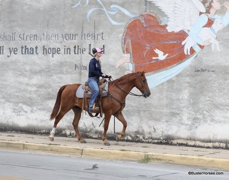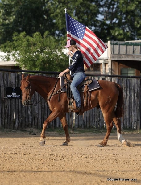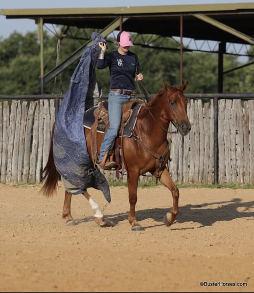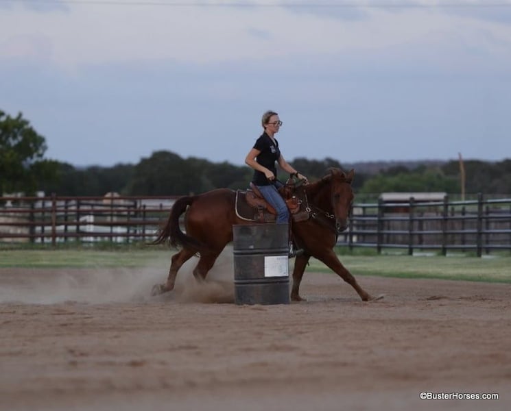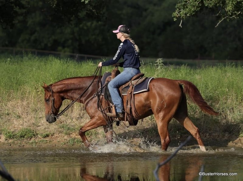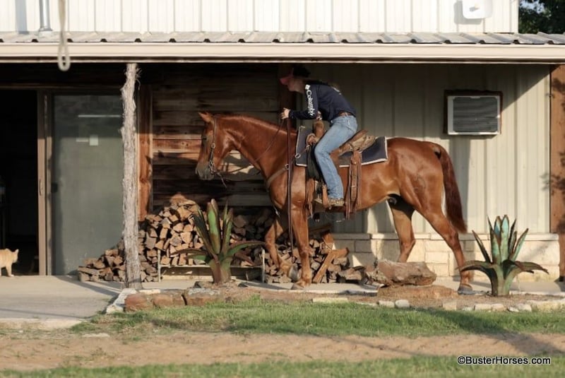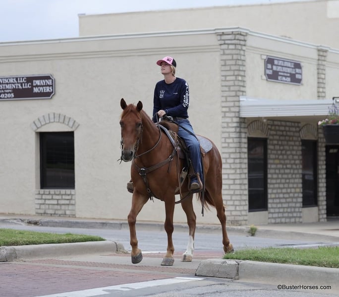 ONLINE AUCTION Place your bids at www.PlatinumEquineAuction.com Starting Bid $3500 Auction ends July 14th, 2024 Need a new saddle? Check out White Rock Saddles on our website or Facebook! “Güey” aka: “Homey”- 15H, 8 year old grade sorrel gelding “Güey” (yes, as in Homey) is as solid no-nonsense and broke as they come. This is literally the exact same horse, every single time, with anyone on him, in all situations. He is solid and steady and has been a ton of miles. He is about as uncomplicated to ride as they come, has a simple one-hand handle, simple point and shoot neck rein, easy style, and a great hard quick stop. Güey has been ridden in town used on the ranch, trail ridden, has been to playdays, ropings, rodeos, and has been in many parades. He hops right on the trailer, stands tied, and enjoys going places. He has good manners on the ground, easy to groom, saddle, bridle, stands like a statue for mount and dismount, walks off quiet on a loose rein, and is happy to leave the barn or ride out alone. Güey gets along well with other horses. He is turned out in a small rotating set of horses right now, and he is never any drama. If you are looking for one to just turnout grab once in a while and be able to enjoy yourself, Güey would be a great fit, he has years and years of miles of experience, and he is still the perfect age and has many years left. Güey is just the right size at 15H, and he is a great build that is stout enough, but still comfy and easy to guide around. Güey was just shod this past week, his teeth were also done by an equine dentist last week, and he had his sheath cleaned, his ears treated for ticks, and he was also power packed wormed. He is good to shoe, has great feet and also goes well barefoot – if his new owner prefers him to be barefoot, we can have his shoes pulled and trim him prior to him heading to his new home. He will arrive at his new home up-to-date and ready to go to work! We are experienced, knowledgeable sellers, and we can help with quickly arranging affordable shipping to any buyer’s location – we have experience shipping worldwide – including regularly to Hawaii, Canada, Mexico, Europe, and South Africa. Please call Buster Horses Ashley 214-605-7174 Located in Weatherford, TX. ONLINE AUCTION Place your bids at www.PlatinumEquineAuction.com Starting Bid $3500 Auction ends July 14th, 2024 Need a new saddle? Check out White Rock Saddles on our website or Facebook!