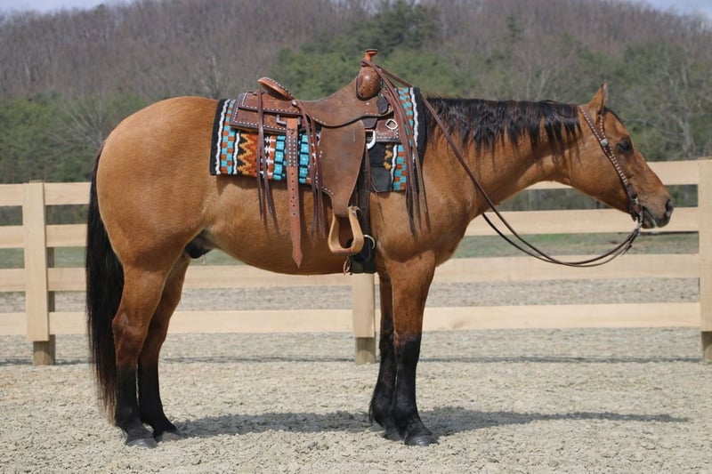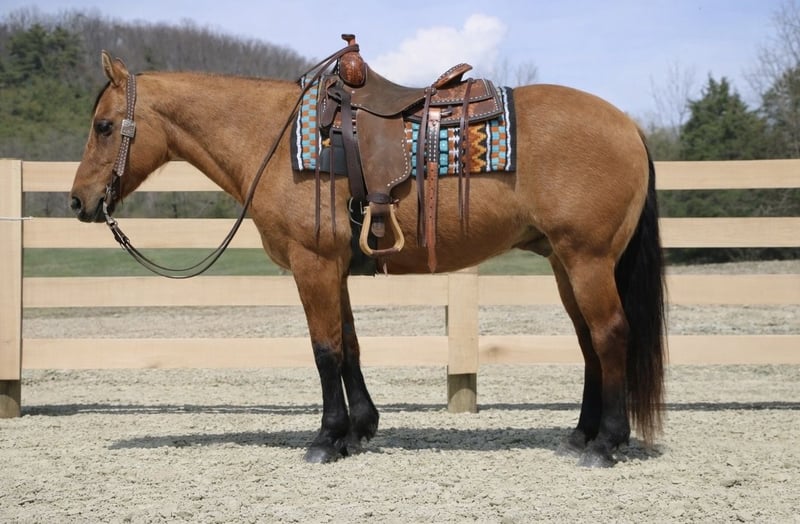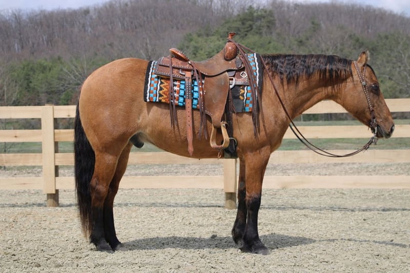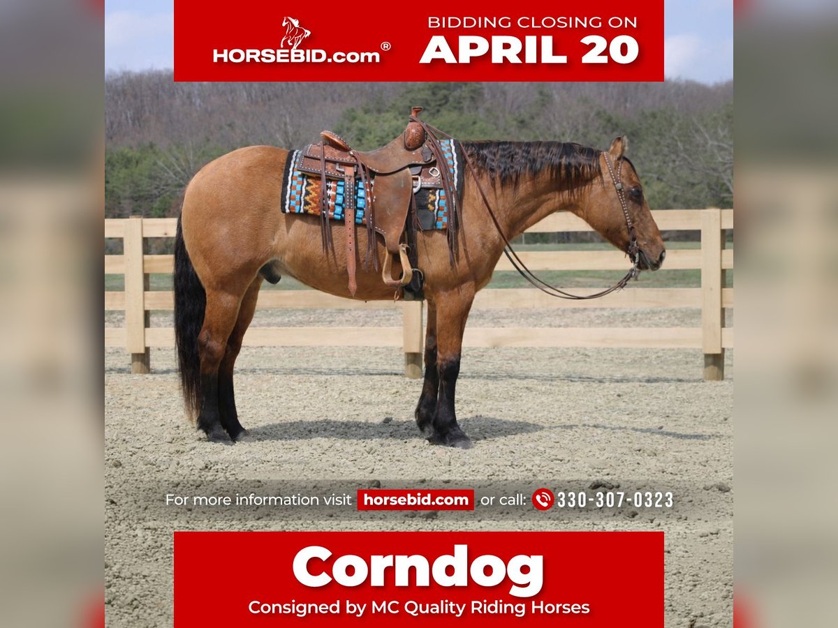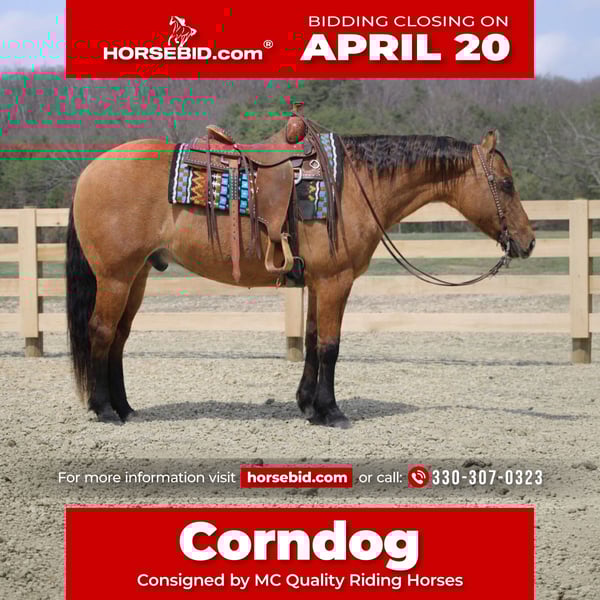 ⚜️𝐭𝐡𝐞 𝓔𝓵𝓲𝓽𝓮 𝐒𝐩𝐫𝐢𝐧𝐠 𝐂𝐥𝐚𝐬𝐬𝐢𝐜⚜️ Happening now thru MONDAY | APRIL 20th - Available EXCLUSIVELY on HorseBid's website! For more details and to register visit: www.Horsebid.com CONSIGNOR CONTACT: MC Quality Riding Horses 330-307-0323 LOCATION: North Bloomfield, OH BREED: Quarter horse REGISTERED: No REGISTERED NAME: Corndog COLOR: Dun HEIGHT: 15 AGE: 10 GENDER: Gelding Every once in a great while, you come across a horse that truly stands above the rest. I’m proud to offer a once-in-a-lifetime opportunity to own one of the best horses I’ve ever had the privilege to own and ride — Corndog. Corndog is a 10-year-old dun gelding standing 15 hands tall. Horses like him are few and far between. You can search for years and still not find another with this kind of versatility, honesty, and natural ability. Corndog rides English, Western, bareback, bridleless, and at liberty. Corndog has a solid foundation in liberty work. His liberty work is something special. He will join up, follow you willingly, and respond to body cues with no halter, no lead, and no pressure. He mirrors your movement, stays hooked on, and genuinely wants to be with you. This is not something that can be forced — it comes from his natural disposition and the kind of mind he has. Horses that are this honest and connected are few and far between. Plenty of horses get labeled “once in a lifetime,” but Corndog truly is the real deal. He is a standout in every sense of the word. Corndog is the kind of horse that works for any level rider and any age rider. He has the training and buttons that experienced riders appreciate, yet he is kind, honest, and safe enough to confidently take care of beginners. He is the go-to horse in my barn for everyone in my family. Every person who rides him enjoys him and loves his quiet, willing disposition. He has been ridden by riders of all ages and has proven himself time and time again with each one. We are not afraid to turn the kids loose on him. My 5-year-old niece can confidently lead Corndog around with our little cousin in the saddle, and she can also ride him by herself without any issue. The older kids have loved taking him out on the trails and have gained so much confidence and experience in the saddle with him. We have genuinely loved our time with Corndog. He is every bit as gentle as he is versatile, and I truly believe he will excel in any direction someone chooses to take him. This gelding has also been used in every aspect of ranch work. From loading trucks to sorting cattle, Corndog absolutely loves his job. He is very cowy, has been roped off of in the pasture, and has been used to doctor and sort. He is especially handy when it comes to penning cattle and is the kind you can rely on to get the job done right.He is comfortable with kids playing around him, dogs roughhousing, and all sorts of everyday commotion. From lawn mowers to semis, Corndog has seen it all. He has been around all types of farm equipment and handles it with ease. He is happy to do any job asked of him and has also been a huge help in training other colts. Corndog is comfortable with a tarp, crosses logs and bridges, is not bothered by the crack of a bull whip, and tolerates all the everyday shenanigans that happen around here. Even with extended time off, you can pull him out of the stall or pasture, saddle him up, and ride right off with no issues. Corndog stalls well, gets along well with other horses in turnout, is easy to catch, and is an all-around pleasure to have in the barn. He is accustomed to small pets, wildlife, and both small and large livestock. He stands quietly to be groomed and tacked, with or without cross ties, and he will side-pass over to a fence or mounting block for easy mounting. Under saddle, Corndog is athletic, balanced, and carries himself beautifully. He is just as enjoyable in the arena as he is on the trail, and he is equally comfortable riding in town through traffic. He correctly picks up both leads on cue, pivots, side-passes with ease, has a lovely extended trot, and lopes beautiful circles. Corndog is the kind of horse I would trust absolutely anyone with. He is safe, seasoned, and dependable. Whether you want to trail ride through the Rocky Mountains, enjoy a dependable family horse, or step into either the Western or English show pen, Corndog is more than capable. He has a habit of exceeding expectations, and there are very few horses you can honestly say that about. On top of all of that, he is a beautiful individual. His eye-catching dun color, big round hip, kind eye, and balanced conformation only add to everything else he brings to the table. He is the complete package. Corndog is great for the veterinarian and farrier and sells 100% sound in every way. He is current on Coggins. I want Corndog to have an exceptional home because he truly deserves one. I am confident that whoever ends up with him will love him just as much as we have. We are located in North Bloomfield, Ohio. For more information, please call or text McKenzie at (330) 307-0323. I could write a book about this amazing gelding, so I encourage you to reach out with any questions. I would be more than happy to tell you more about my best bud, Corndog.