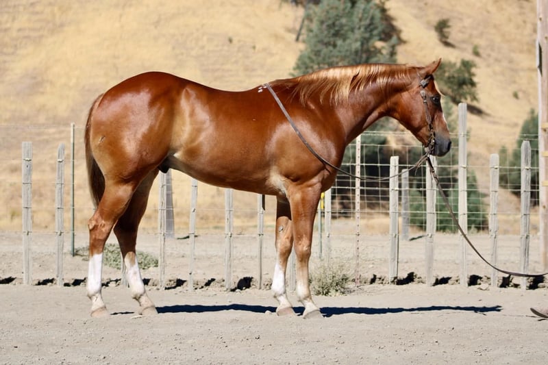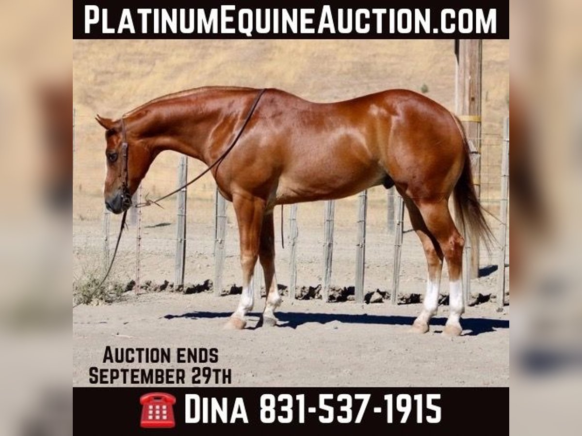 ONLINE AUCTION Place your bids at www.PlatinumEquineAuction.com Starting Bid $3500 Auction ends September 29th, 2024 Need a new saddle? Check out White Rock Saddles on our website or Facebook! Meet Chubbs, the stunning 8 year-old sorrel gelding with four white socks and a flaxen mane and tail. Standing at an impressive 15.1 hands tall, this beautiful big stout boy is truly a sight to behold. With his smooth gaits and calm disposition, Chubbs is ready for any adventure that comes his way.In the arena, Chubbs shines with his impeccable form and correct movements. He lopes circles with ease and collection, displaying his natural abilities. His stop is smooth and precise, making it easy for any rider to control him. And when it comes to those handy turn arounds Chubbs can do them with grace and style. But don’t let his show ring skills fool you Chubbs is just as comfortable out on the ranch. He has gathered cattle and participated in brandings proving himself to be a reliable partner in any working situation. This boy’s eagerness to please knows no bounds. Chubbs also excels as a trail horse, navigating through rough terrain with ease. Whether it’s crossing long stretches of water or tackling narrow trails he is ready for the challenge. Chubbs handles obstacles such as tires, tarps, and balls he does it all with confidence. You can count on him to handle any challenge that comes your way during your adventures together. But what sets Chubbs apart from other horses is his exceptional temperament. He is safe for riders of all levels – from novice riders who are just learning the ropes to experienced equestrians looking for their next show partner.Chubbs handles every situation like a pro while still maintaining his unique style. Not only is he talented under saddle, but he also possesses excellent ground manners. Chubbs ties, clips, bathes without fussing about anything making him an absolute dream to have around in the barn or pasture. He loads into trailers without hesitation and hauls like a seasoned traveler. With his handsome looks and charming personality, it’s no wonder why Chubbs is the talk of the town wherever he goes. He loves people and is always excited to meet new friends. This boy could easily become your next beloved family member, bringing joy and companionship into your life. Chubbs is a one-of-a-kind horse that excels in every aspect from his stunning appearance to his impressive skills under saddle and on the ranch. With him by your side, you’ll be ready to take on any challenge with grace and style. Come meet Chubbs today and see for yourself why he’s everyone’s favorite! Contact Longhorn Ranch Dina 831-537-1915 located in Paicines, CA. ONLINE AUCTION Place your bids at www.PlatinumEquineAuction.com Starting Bid $3500 Auction ends September 29th, 2024 Need a new saddle? Check out White Rock Saddles on our website or Facebook! ONLINE AUCTION Place your bids at www.PlatinumEquineAuction.com Starting Bid $3500 Auction ends September 29th, 2024 Need a new saddle? Check out White Rock Saddles on our website or Facebook!