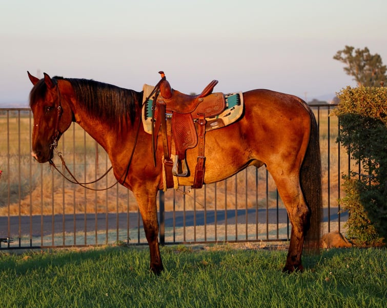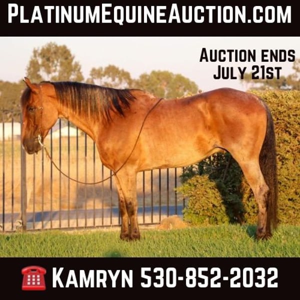 ONLINE AUCTION Place your bids at www.PlatinumEquineAuction.com Starting Bid $3500 Auction ends July 21st, 2024 Need a new saddle? Check out White Rock Saddles on our website or Facebook! Meet Apollo, the 8 year old 16 hand roan horse that excels both on the trail and in the arena. Apollo isn’t just any horse; he’s a trailblazing, traffic-immune, arena champion ready to become your trusted companion. Apollo is the definition of a trail master. He has confidently navigated steep mountain hills, proving himself to be as sure-footed as a goat. His careful, deliberate steps ensure a safe and enjoyable ride, no matter the terrain. Whether you’re facing rocky paths, dense forests, or steep inclines, Apollo will get you through with ease. He meticulously watches where he places his feet, giving you peace of mind on every ride. Apollo’s talents aren’t confined to the wilderness. He’s also been ridden into town, remaining unflappable in the face of urban chaos. Rushing traffic, honking horns, bicycles, dogs, wildlife, and even balloons are no match for Apollo’s calm demeanor. He takes it all in stride, making him the perfect horse for riders who want to explore urban areas or need a steady mount in unpredictable environments. In the arena, Apollo shines just as brightly. He performs walk, trot, and lope all on a loose rein, showcasing his training and responsiveness. His big, easy stop and beautiful collection make him a joy to ride. Apollo also side passes to open and close gates with precision and grace. His movements are fluid and elegant, making him a standout in any arena setting. Apollo has been exposed to a variety of potentially spooky scenarios and handles them with poise. Flapping tarps and waving flags are no cause for concern for this seasoned horse. His calm and composed nature makes him an ideal partner for riders of all levels, from intermediate to experienced equestrians looking for a reliable and versatile horse. Apollo is more than just a horse; he’s a dependable partner who will go anywhere and do anything you ask of him with the best puppy dog loving personality and will literally follow you anywhere. His combination of trail prowess, urban steadiness, and arena excellence make him a rare find. If you want a horse that can handle it all with grace and composure, Apollo is the perfect choice. He gets along well with others goes well in a stall or pasture. He jumps in the trailer himself and is ready to go anytime. Apollo has nice big feet and big bones to handle any terrian. He is UTD on shots, wormer, shoes. Don’t miss out on the opportunity to own this exceptional horse. Contact us today at KW Ranch and Performance Horses Kamryn 530-852-2032 to learn more about Apollo and arrange a visit. ONLINE AUCTION Place your bids at www.PlatinumEquineAuction.com Starting Bid $3500 Auction ends July 21st, 2024 Need a new saddle? Check out White Rock Saddles on our website or Facebook!