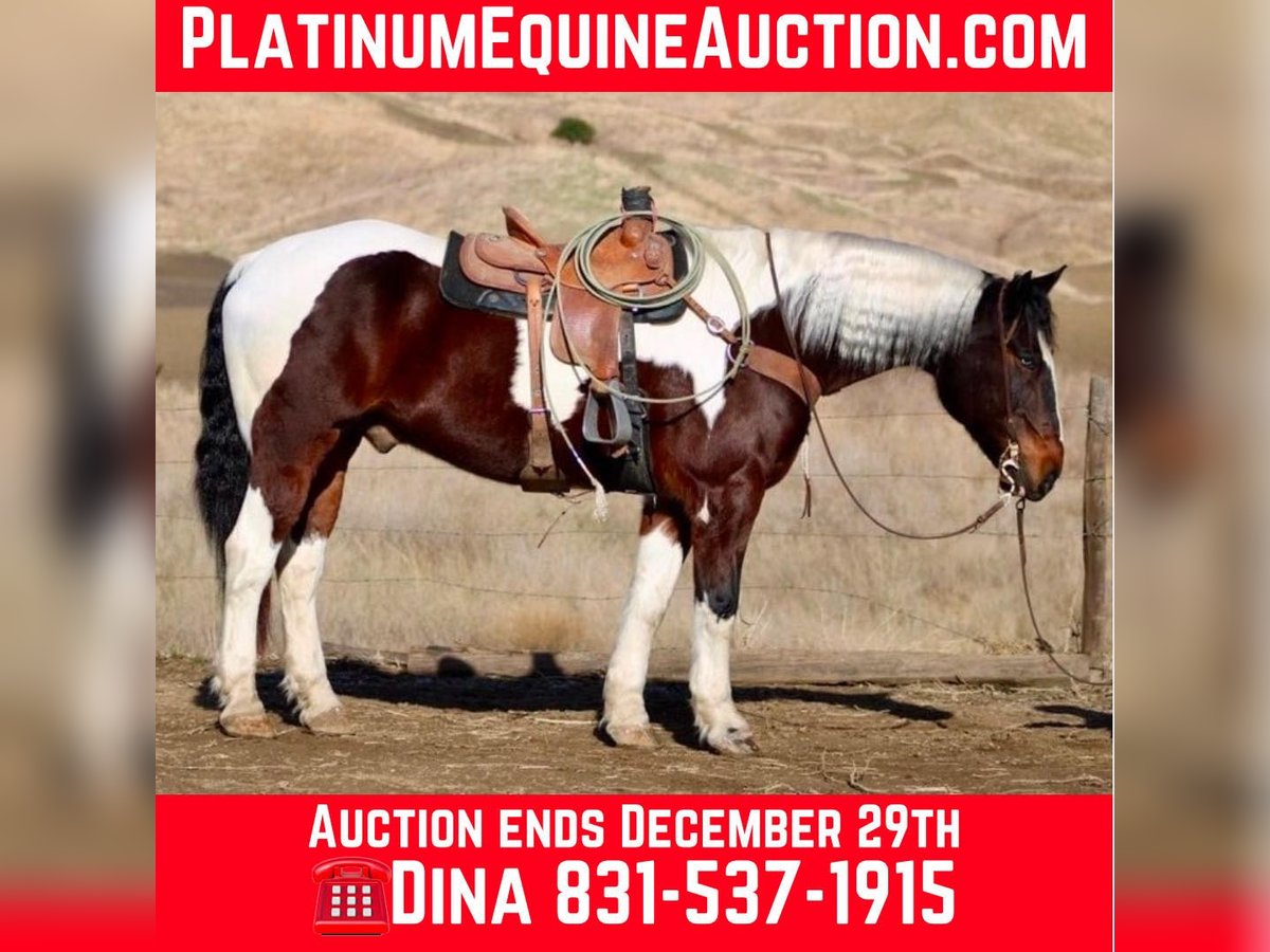 ONLINE AUCTION Place your bids at www.PlatinumEquineAuction.com Starting Bid $3500 Auction ends December 29th, 2024 Need a new saddle? Check out White Rock Saddles on our website or Facebook! Meet Bison… The gentle giant who will make your New Year unforgettable! This stunning 8-year-old tri color paint draft cross gelding is stunning with one blue eye standing at 16 hands, embodying strength and grace all wrapped up in one big puppy dog of a horse. Bison will greet you at the gate and put his nose in the halter he loves attention. Whether you’re gathering cattle or dragging calves to the fire or just enjoying a leisurely ride through picturesque state parks, he will calmly go out alone or with a groups of friends. He is great in the pasture with mares and geldings and is just as content in a stall setting. Bison is your go-to partner for any adventure. He calmly crosses flowing rivers and gracefully walks over downed trees while taking in the sights of wildlife with an air of confidence. With his impressive neck rein and sliding stop, this boy knows how to pick up leads like a pro in the arena making him perfect for riders from beginners to advanced he is a confidence builder. He’s also quite the star when it comes to parades, strutting his stuff like he owns the spotlight! But don’t let his good looks fool you; Bison has mastered obstacles too navigating bridges, car washes, and even tires with ease while looking effortlessly stylish whether dressed in English or Western tack. He has carried flags and is not bothered by tarps or balls he is just and easy going boy. He rides bareback in just a halter. You can stand on him slide off his butt and crawl all over him! Riding him feels like sinking into a plush couch; he’s as comfortable as they come! Plus, he’s easy to clip, show off at events or haul around town. He is not concerned about cars, semis or pedestrians. Bison tacks up easy stands for mounting and enjoys grooming sessions he is shod all the way around and good for the farrier. If you’ve been searching for that special equine companion who embodies both heart and versatility. Bison is waiting to meet you at Longhorn Ranch! Located in Paicines, CA contact Dina 831-537-1915. ONLINE AUCTION Place your bids at www.PlatinumEquineAuction.com Starting Bid $3500 Auction ends December 29th, 2024 Need a new saddle? Check out White Rock Saddles on our website or Facebook!