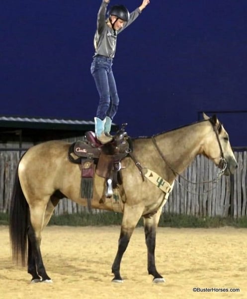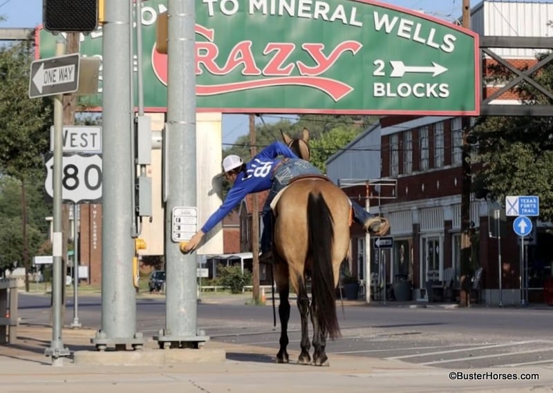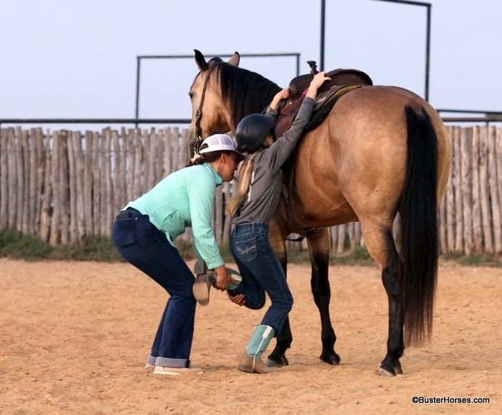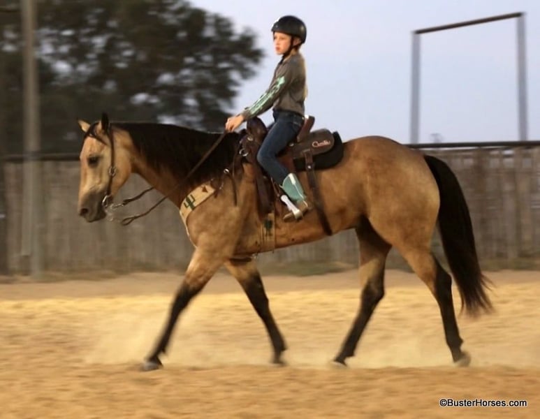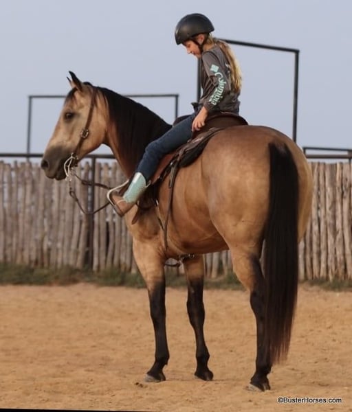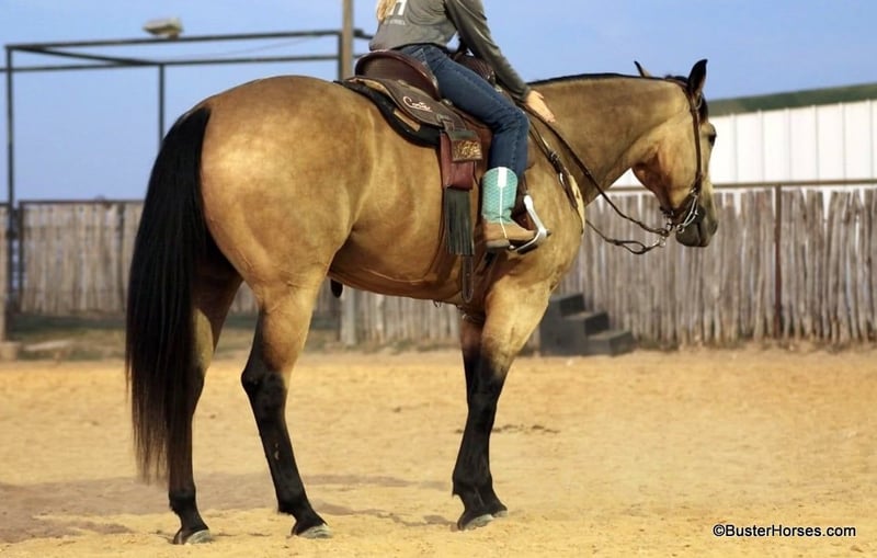 ONLINE AUCTION Place your bids at www.PlatinumEquineAuction.com Starting Bid $3500 Auction ends September 8th, 2024 Need a new saddle? Check out White Rock Saddles on our website or Facebook! “Hollywoods Playright” – 15.1H, 2016′ buckskin AQHA gelding. Hollywood is a GORGEOUS solid, safe, solid guy. He is the prime-age and ideal size that everyone is looking for and he is about as easy to ride as a horse comes. He has smooth, easy gaits, and that simple, one-hand, old-school ranch horse style handle that just about anyone can get alone well with! He is smooth at the walk and trot and incredibly soft and smooth to lope, very comfortable even for new riders. This guy is so pleasant to be around – everyone who has ever handled this horse or sat on him, absolutely adores him. He is relaxed, but still responsive, just a blast to ride. Hollywood has been used outside on a ranch and has been roped off of outside on the ranch, and also in the arena on the head side. Hollywood stands like a statue for mount and dismount and is so relaxed and easy going, he rides to your level and is happy just to cruise around if that is all you want to do! He is also willing to work and will glady trot and lope circles for just about any style and level of rider and naturally has a big stop and is really quiet and simple to guide around. We have used this guy for total beginners and also for riders just coming back from a bad experience and he is a great confidence builder and makes everyone feel right at home on his back. For advanced riders, he will ride up to your level and is very fancy broke and can be feely and responsive when asked to be. He is as pure as they get and very genuine – he stays together, honest, and rides around – even with his bridle off. He is very personable, sweet, and kind! Hollywood has been tons and tons of miles outside but has also been hauled to many events and acts like an old seasoned rodeo horse. He loves trail riding in a group, and is just as comfortable out alone with his rider. He enjoys hopping in the trailer and going to new places and he loves riding in traffic around town. Hollywood was just shod this week. His teeth were also just done by an equine dentist this past spring and at the same time he had his sheath cleaned, his ears preemptively treated for ticks, and he was also power packed wormed. Hollywood has great feet and goes really well barefoot – if his new owner prefers him to be barefoot, we can have his shoes pulled, prior to him heading to his new home. He will arrive at his new home up-to-date and ready to go to work! To see additional videos, go to our website: BusterHorses.com or our Facebook page Buster Horses. Please call anytime for more information at 214-605-7174 Hollywood is located in Weatherford, TX – one hour from Dallas / Fort Worth International Airport. He is an easy day trip or fun overnight trip to come try out, from anywhere! We are experienced, knowledgeable sellers, and we can help with quickly arranging affordable shipping to any buyer’s location – we have experience shipping worldwide – including regularly to Hawaii, Canada, Mexico, Europe, and South Africa. ONLINE AUCTION Place your bids at www.PlatinumEquineAuction.com Starting Bid $3500 Auction ends September 8th, 2024 Need a new saddle? Check out White Rock Saddles on our website or Facebook!