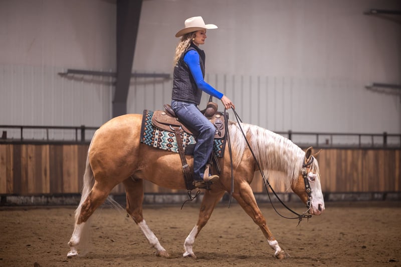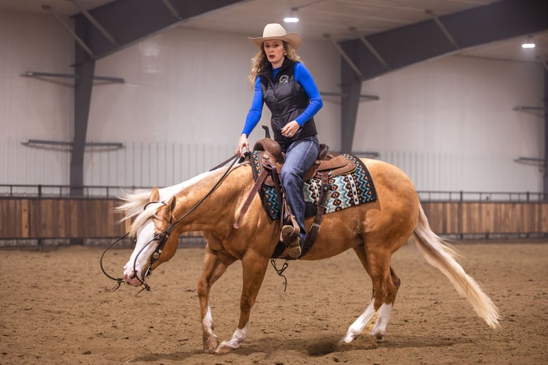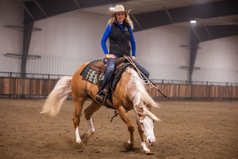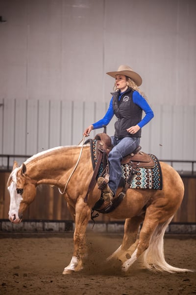 This extraordinary gelding’s ability to hit the ground hard and smooth in his stops is incomparable. It’s like having an emergency brake that you don’t even have to pull on. His rundowns are smooth and controlled- never outrunning his rider and will stop every single time. Boss can spin slow and low-headed and then hit the gas button when asked. By far the EASIEST lead changer ever!!! Takes the absolute lightest cue to change leads- he is always ready! Seriously though Bri will ride this horse in tennis shoes and bridle-less and do a full reining pattern. Plain and simple he is EASY. Boss is a boss. His fast to slow transition is flawless, as he is always looking to slow down for you and his rollbacks are SO fun! Boss is the one to teach the newbies and lead you to the winner circle!