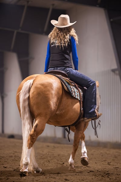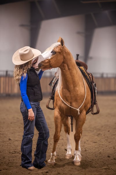 We love watching Boss move, even just when he is out playing. He has an elegant way of moving with a lot of grace in his strides. Bossman is a pleasure outside of the arena as he will graciously trail ride alone or in a group. This gelding is the most spook-proof horse we have ever had. Extremely large and loud machinery going by him is of no concern. When it comes to crazy dogs, silage tarps, and our obstacle course, he won’t even take a second look. He has a nice, easy going walk and will stop and hang out for as long as you want. Boss crosses valleys, creeks, logs, and anything else he comes into contact with. He loves going for a nice swim in the river or pond as well! This is the horse you put your town friends on. This is the horse you have the kids warm up for you. This is the horse that you leave off for a month and then load him up to go to a last minute show. This is the horse that is irreplaceable.