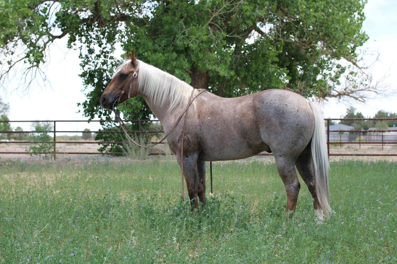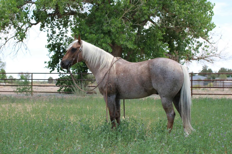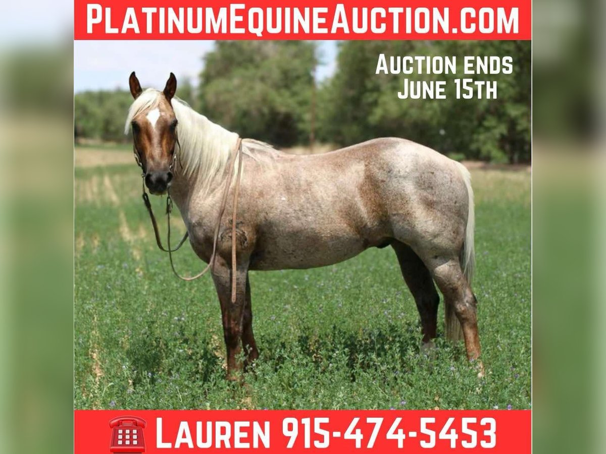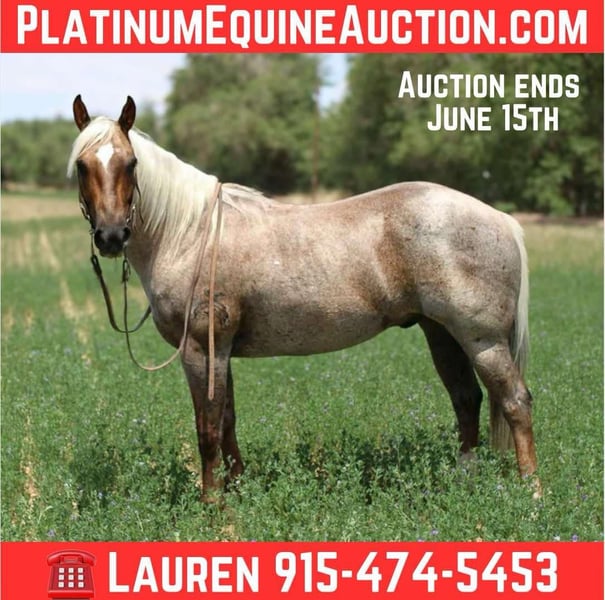 ONLINE AUCTION Place your bids at www.PlatinumEquineAuction.com Starting Bid $3500 Auction ends June 15th, 2025 Need a new saddle? Check out White Rock Saddles on our website or Facebook! Canelo is the absolute all around family horse! He is a grade gelding but does come from a registered sire that goes back to highbrow cat and out of a grade mare. He has been the baby sitter around our place we bring him out for all the kids and beginners. From trail riding down the road or giving rides at the family parties he’s our go to. Canelo is 10 years old he stands 14’2 h tall he’s built like a like bulldog quarter horse short,stocky, big hip with a little head. He’s got the coolest dark chocolate palomino roan color! I’ve personally never seen a horse with that color he’s truly a horse of a different color. To top it off he has the personality to match his color absolutely unique and special. We’ve used him also on the ranch from rounding cows up or pushing steers up at the roping practices. He has also been rode in the arena on the heel side, he’s good in the box we’ve roped medium steers and roped the smarty. He knows his leads, he will lope big pretty circles. He’s been around the barrels, flags, tarps, traffic, he’s absolutely safe for any level rider will be safe everyday of the week and 100% reliable. He is easy to shoe, saddle , bathe , load and haul with no issues. He will be straight legged no bumps or blemishes and 100% sound. If you are looking for your next family horse Canelo is your guy don’t miss him. Located in El Paso, TX. Contact Lauren Lara 915-474-5453. ONLINE AUCTION Place your bids at www.PlatinumEquineAuction.com Starting Bid $3500 Auction ends June 15th, 2025 Need a new saddle? Check out White Rock Saddles on our website or Facebook!