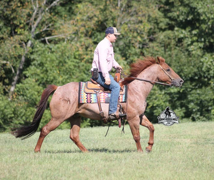 𝐀𝐝𝐚𝐦'𝐬 𝐇𝐨𝐫𝐬𝐞 & 𝐌𝐮𝐥𝐞 𝐂𝐨𝐦𝐩𝐚𝐧𝐲'𝐬 ✷𝑬𝒗𝒆𝒓𝒚 𝑴𝒊𝒍𝒆 𝑨 𝑴𝒆𝒎𝒐𝒓𝒚✷ 𝐄𝐗𝐂𝐋𝐔𝐒𝐈𝐕𝐄 𝐒𝐀𝐋𝐄 Happening now thru MONDAY | FEBRUARY 2nd - Available EXCLUSIVELY on HorseBid's website! For more details and to register visit: www.Horsebid.com CONSIGNOR CONTACT: Adams Horse and Mule Company 606-308-2461 LOCATION: Mt. Vernon, KY BREED: Quarter Horse REGISTERED: No COLOR: Red Roan HEIGHT: 14.2 AGE: 11 GENDER: Gelding Simon is a stout and I mean Stout built 14.2H, Red Roan Quarter Horse Gelding that is 11 years old. Simon is a well traveled horse that has been ridden in several states and has been used as a ranch horse his whole life. From herding to sorting, pasture roping, loading trucks… he has done it all! Simon has been trail ridden in several states and been in the high country that is very rough and rocky. He will cross creeks, ditches, logs and navigate rough rocky areas. Simon has a smooth jog and a very smooth lope! He takes the correct leads, lopes nice cirlces, is one hand broke and reins around with ease. Simon has been ridden by our kids and is slow and easy with more whoa than go! He has been exposed to all kinds of wildlife such as deer or turkey or other animals like cows or dogs and will go anywhere that he is asked too. He has been ridden many miles in the mountains of Eastern Kentucky and encountered every obstacle possible on the trail. He will go up or down even the steepest slopes, across deep creeks, over downed trees, and over all types of rough terrain while still being sure footed. If you want to feel and look like a real deal cowboy/cowgirl just climb on Simon and he will make you look like one! If you have any questions call Eric 606-308-2461.
