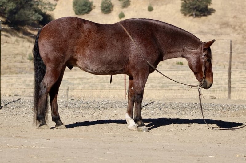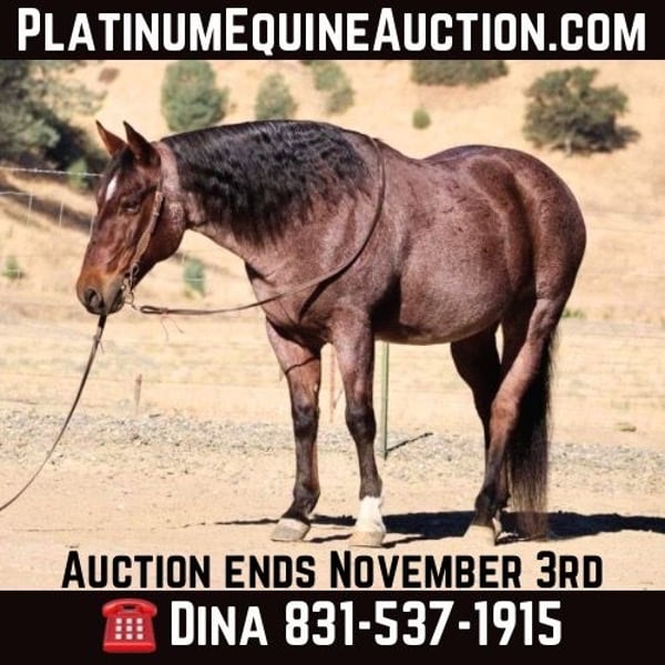 ONLINE AUCTION Place your bids at www.PlatinumEquineAuction.com Starting Bid $3500 Auction ends November 3rd, 2024 Need a new saddle? Check out White Rock Saddles on our website or Facebook! Meet the extraordinary Barney, a red roan gelding who exudes charm and confidence in every stride. Standing at a robust 14.2 hands, 9 years old this plush powerhouse is not just cute as a button but embodies the perfect blend of strength and grace that makes him an absolute treasure for any family seeking equestrian companionship. With extensive experience being roped off of outside, doctored, branded, and traversed across diverse terrains, Barney is your go-to horse his unwavering reliability ensures you can point him toward any destination with complete peace of mind. His remarkable patience and forgiving nature allow riders to hone their skills without fear; he thrives in both social pastures alongside his equine friends or comfortably tucked away in stalls when necessary. An easy keeper by all accounts, he delights in human interaction tying up effortlessly wherever required while enjoying baths and clipping sessions like a true gentleman. Barney’s versatility knows no bounds; whether riding solo through serene trails or galloping amidst spirited groups, he remains unflappable even when faced with wildlife or bustling traffic a testament to his calm demeanor. In arenas where precision matters most, Barney transitions beautifully between gaits with ease he picks up leads seamlessly in both directions while showcasing some impressive reining training that adds flair to his already refined repertoire of skills. Known for his innate ability to work cows and effectively among countless riders of varying expertise levels without hesitation or concern for the rider’s capabilities, Barney truly shines as a dependable partner willing to nurture growth. This gelding is an absolute dream and loves cow work and is a pleasure to ride. Barney is current on shots worming and farrier care. Barney is ready to become part of you’re family. Please contact Longhorn Ranch Dina 831-537-1915 Located in Paicines, CA. ONLINE AUCTION Place your bids at www.PlatinumEquineAuction.com Starting Bid $3500 Auction ends November 3rd, 2024 Need a new saddle? Check out White Rock Saddles on our website or Facebook!