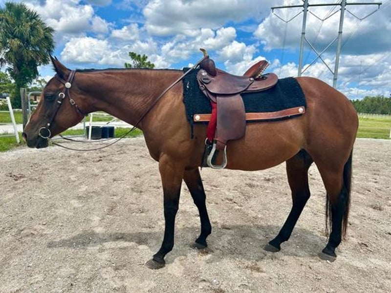ONLINE AUCTION Place your bids at www.PlatinumEquineAuction.com Starting Bid $3500 Auction ends September 1st, 2024 Need a new saddle? Check out White Rock Saddles on our website or Facebook! Miss Pura Vida (pure life) is broodmare 9 years young standing 14.3hh. She is currently bred with a QH bay stud and due early 2025!!! She is level headed with a solid mind, enjoys being groomed and spending time with humans. She isn’t spooky, she has been handled on windy days and around dump trucks that don’t seem to phase her. With her temperament she would make a great recipient mare or broodmare. She has great ranch style breeding and would also be open to a job! She has been lightly started under saddle and ready to finish your way. She loads, ties, bathes and good for the vet. She still needs support for hoof trims on the hind, check out her awesome video!! It also contains footage on her trim (non-sedated) 8/10/24. She lunges on a line and has good coordination over ground poles. Very willing and want to please. When you come to the barn she will say hello with a neigh and whinny especially if you have a treat. Overall she is an absolute sweetheart and hope to find her an amazing family! She is utd on all shots & coggins. She is Barefoot and sound. Contact Rebecca Rodriguez 407-496-0088 with any questions. Located in Christmas, FL. ONLINE AUCTION Place your bids at www.PlatinumEquineAuction.com Starting Bid $3500 Auction ends September 1st, 2024 Need a new saddle? Check out White Rock Saddles on our website or Facebook!