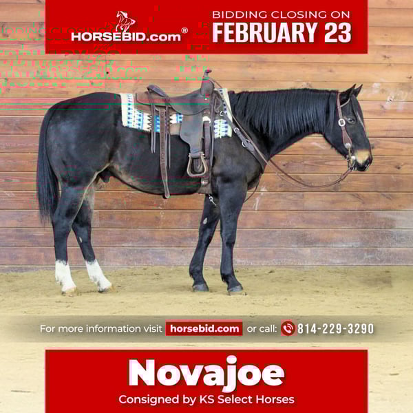 💎 𝐓𝐇𝐄 𝓓𝓲𝓪𝓶𝓸𝓷𝓭 𝐒𝐇𝐎𝐖𝐂𝐀𝐒𝐄 💎 Happening now thru MONDAY | FEBRUARY 23rd - Available EXCLUSIVELY on HorseBid's website! For more details and to register visit: www.Horsebid.com CONSIGNOR CONTACT: KS Select Horses 814-229-3290 LOCATION: Clarion, PA BREED: QH REGISTERED: Yes REGISTERED NAME: Novajoe COLOR: Brown HEIGHT: 15.1 AGE: 11 GENDER: Gelding Novajoe is a Registered American Quarter Horse Gelding. Standing 15.1 hands tall and a very good looking gelding. Novajoe is super good broke to ride and is a safe all around family horse that is super quiet and gentle and easy to ride. If you can sit on a horse and hold the reins you should be able to ride him. He is that good broke! Novajoe knows what a full honest days work is. He has worked on a large cattle operation and has worked many days on the feed lot loading trucks with cattle. He also rides very nicely in the arena and has a nice smooth trot with head set and a nice canter. Lopes nice circles each way. Novajoe has lots of handle. He will spin both ways, side pass, good stop and back up. Pull his bridle off and ride him with a rope around his neck. If you been looking for that super seasoned been there done that safe trail horse then check out Novajoe because he is a awesome trail horse! Super Nice All Around Good Broke and Safe Registered Gelding. Dont Miss Out On Novajoe! We can help arrange delivery anywhere in the United States. Feel Free To Call or Text Kris at 81-229-3290 Thank You and God Bless