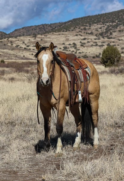 ONLINE AUCTION Place your bids at www.PlatinumEquineAuction.com Starting Bid $3500 Auction ends April 6th, 2025 Need a new saddle? Check out White Rock Saddles on our website or Facebook! Leroy is a sweet, fun young gelding with his whole life in front of him. He is well built, stands 15H and is 4 years old. He is a total dork and pet – and he is so much fun to be around. He has a very endearing, playful personality – and he loves to be messed with and have a job. He is very bold and curious, he is going to make a very confident solid trail riding companion. He does great outside, is always willing to go into new situations and try anything you point him at. He loves going places, and gets super excited about the water! He is great to catch, is that annoying horse that always comes over to see what you’re doing and wants to be in the middle of it. He will just stand there by you, just for maybe getting some attention. If you have tools, or a cap, or a brush laying around – he may grab them and run off with them. He loves water and when you bathe him he always tries to grab the water hose and put it in his mouth. He is easy to groom, saddle, bridle, and is always quiet to step on – even if he’s been left off for a couple weeks. He catches both leads willingly and evenly, and has a nice naturally balanced trot and lope, he will walk around on a relaxed rein, and he has a nice stop, and already trots and lopes nice circles each direction. This guy has a solid foundation for someone to take on from here and finish any way they like for a particular job, or just enjoy him as he is, as a fun pleasure and trail riding horse. Leroy hops right on the trailer, he stands quietly – and he is just as confident about riding out alone as he is riding out in a group. He just dropped his flat winter hair …and he is absolutely stunning gold color and so shiny now. We are going to try to do some even more recent pictures and videos because he’s completely changed color just in the last few days – and he is even more shiny and gorgeous now! Everyone that pulls in the driveway notices him. Please give us a call if you would like to come see him and meet him, he is definitely one of those horses that you’ll like even more in person, he has a very cool personality. Leroy just wears front shoes, and his feet were just reset last week – he was barefoot this past year, he has really great feet and could easily go barefoot again. His teeth were just done by our equine dentist last month, and he also had his sheath cleaned, his ears preemptively treated for ticks, and was dewormed at that time. He is in great shape and in good health. Watch his video, and to see additional videos, go to our website: BusterHorses.com or our Facebook page Buster Horses or call Ashley with Buster Horses 214-605-7174 for more info. Leroy is located in Weatherford, TX – one hour from Dallas / Fort Worth International Airport. He is an easy day trip, or fun overnight trip to come and try out, from anywhere! We are experienced, knowledgeable sellers, and we can help with quickly arranging affordable shipping to any buyer’s location – we have experience shipping worldwide – including regularly to Hawaii, Canada, Mexico, Europe, and South Africa. Check our website for buyer reviews, more videos of Leroy, additional info, etc: BusterHorses.com/Leroy ONLINE AUCTION Place your bids at www.PlatinumEquineAuction.com Starting Bid $3500 Auction ends April 6th, 2025 Need a new saddle? Check out White Rock Saddles on our website or Facebook!