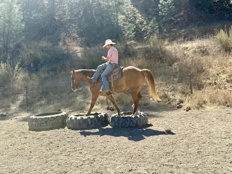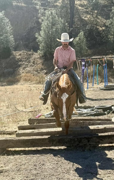 ONLINE AUCTION Place your bids at www.PlatinumEquineAuction.com Starting Bid $3500 Auction ends October 26th, 2025 Need a new saddle? Check out White Rock Saddles on our website or Facebook AVA Bills Doc Frost “Billy” – Safe, Sound, and Solid as They come… Meet Billy, the kind of gelding everyone hopes to find and few ever do. This 2015 AQHA roan dun gelding stands a solid 15 hands, thick-built with big bone, a kind eye, and tiger-striped legs that give him that true ranch horse look. He’s gentle, steady, and broke the way good horses used to be — simple, honest, and dependable through and through. Billy is as easy to ride as he is to look at. He stays soft in the bridle, picks up both leads willingly, stops and backs with ease, and moves off your leg without a fuss. His transitions are smooth, his gaits are comfortable, and he rides collected and correct whether you’re in the arena or out covering country. Out on the trail or around the ranch, he’s the kind you can count on. Traffic, dogs, flags, tarps, balloons, wildlife, water, or bridges — none of it bothers him. He’ll step through creeks, cross logs and tires, ride through brush, and stay quiet and confident no matter where you take him. Billy has been used for ranch chores and long trail rides and never gets worked up about anything. He’s the same horse every time — levelheaded, patient, and willing. Anyone can ride him — from the littlest kids to the biggest cowboys. He’s safe, forgiving, and easy in every way. His pedigree matches his quality — by TKS Bills Misty Dun and out of VA Docs Dakota Ruby, carrying the influence of Bill’s Rock, Dry Doc, and Docs Frosty Buck — all bloodlines known for bone, brains, and heart. Billy represents them well in both mind and body. He’s easy to catch, stands tied, loads, shoes, and hauls like a pro. He’s one of those geldings you can take anywhere and be proud to show up with. We trust this horse completely — he’s proven, genuine, and worth every bit of what he stands for. If you’re looking for a partner that’s safe, classy, and built to last, Billy’s the one you’ll be proud to call yours. Call or text Dina with Longhorn Ranch 831-537-1915–Nationwide shipping available from Paicines, CA. ONLINE AUCTION Place your bids at www.PlatinumEquineAuction.com Starting Bid $3500 Auction ends October 26th, 2025 Need a new saddle? Check out White Rock Saddles on our website or Facebook