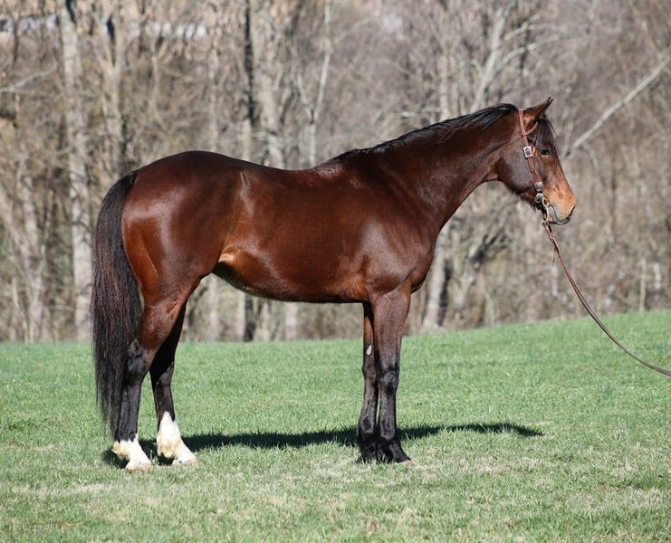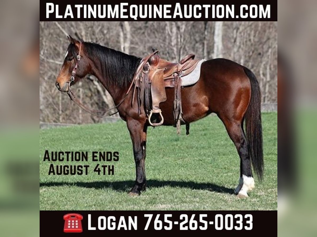 ONLINE AUCTION Place your bids at www.PlatinumEquineAuction.com Starting Bid $3500 Auction ends August 4th, 2024 Need a new saddle? Check out White Rock Saddles on our website or Facebook! Arnold is a stout built Bay gelding standing around 15.1hh and he is 9 years old. Arnold has been used on a feedlot and has been used to roped and doctor sick ones. He knows his way around the ranch and has plenty of cow sense. He has also penned cattle in the stockyards and loaded trucks. Arnold is an excellent working horse but is just as happy to go out and have a relaxing trail ride as he is great on trails and he will cross creeks, ditches, logs and navigate rough rocky areas. He has a smooth jog, a VERY VERY nice easy to set lope, a good stop, turns a circle both ways and backs with ease! He has been exposed to all kinds of wildlife such as deer or turkey or other animals like cows or dogs and will go anywhere that he is asked too. He has been rode many miles in the mountains of Eastern Kentucky and encountered every obstacle possible on the trail. He will go up or down even the steepest slopes, across deep creeks, over downed trees, and over all types of rough terrain while still being sure footed. Arnold is an excellent horse for any job around the ranch or trails! He is located in Level Green, KY. Feel free to call Moore Trained Horses Logan 765-265-0033 with any questions. ONLINE AUCTION Place your bids at www.PlatinumEquineAuction.com Starting Bid $3500 Auction ends August 4th, 2024 Need a new saddle? Check out White Rock Saddles on our website or Facebook!