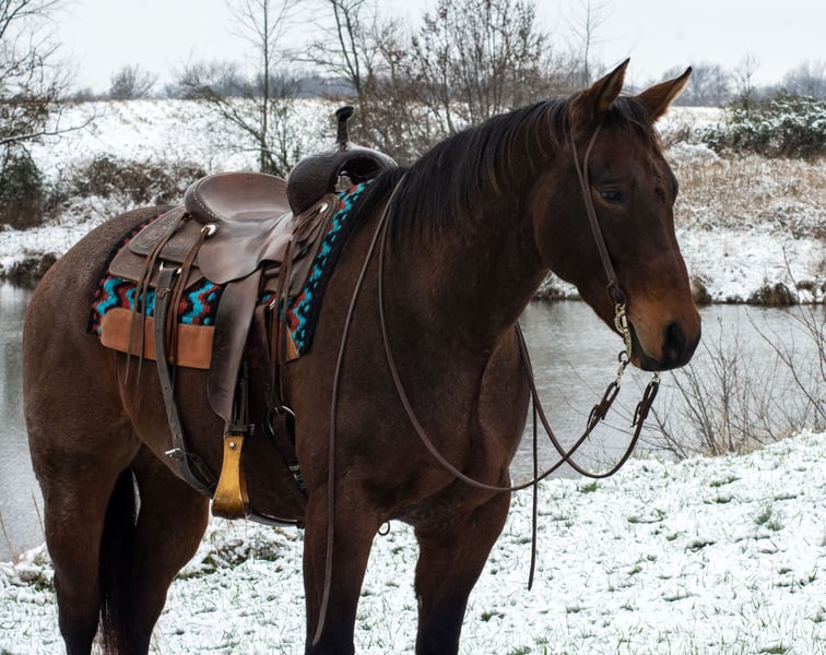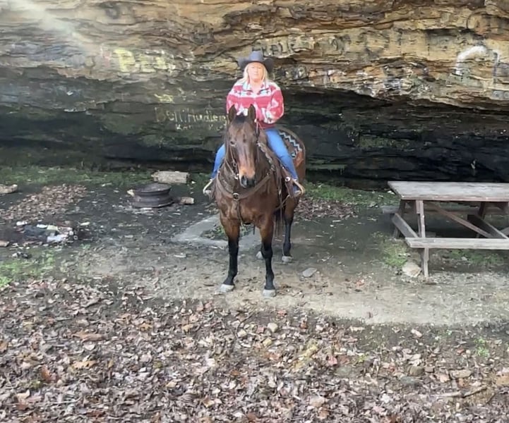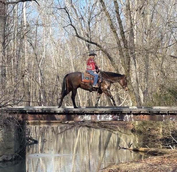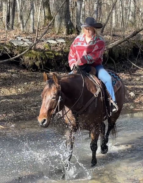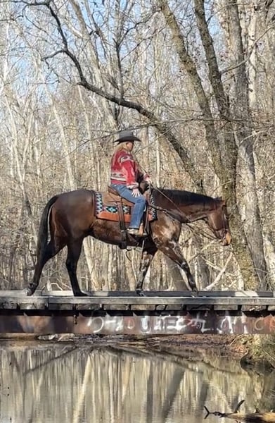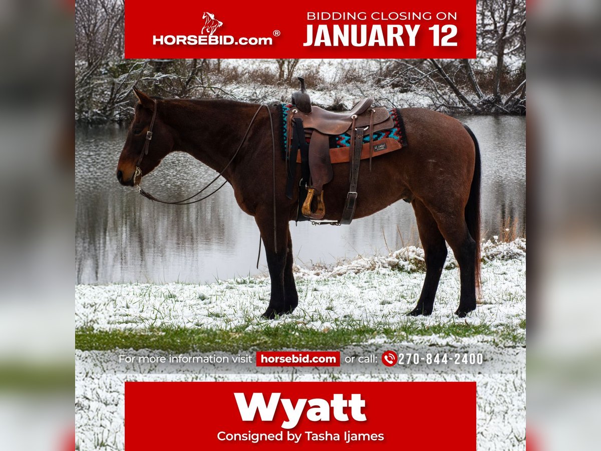 ♦️𝐍𝐄𝐖 𝐘𝐄𝐀𝐑'𝐒 𝑬𝒙𝒕𝒓𝒂𝒗𝒂𝒈𝒂𝒏𝒛𝒂♦️ Happening now thru MONDAY | JANUARY 12th - Available EXCLUSIVELY on HorseBid's website! For more details and to register visit: www.Horsebid.com CONSIGNOR CONTACT: Tasha Ijames 270-844-2400 LOCATION: Henderson, KY BREED: Quarter Horse REGISTERED: Yes REGISTERED NAME: Travelin In Style COLOR: Bay Roan HEIGHT: 15.1 AGE: 11 GENDER: Gelding Wyatt as we call him stands about 15.1 hands tall and weighs 1200lbs. He’s a well stout built gelding. Wyatt is great for any level rider and perfect for the whole family. He’s honest, dependable and safe. Wyatt is my go to for a relaxing trail ride and not have to worry about anything. He is an exceptional trail horse and doesn’t care if he’s in the front, middle, or back of the pack. Wyatt will cross any type of water, cross logs, go through mud, rough terrain, up and down big hills and cliffs, over bridges, dog safe and traffic safe. I have taken Wyatt on multiple trail rides and you couldn't ask for a more dependable safer horse. He stays the same horse all the time and is one you don’t have to ride everyday. Not only is he great out on the trail, but Wyatt has also been a roping horse. You can back him in a box with no problems and head or heel on him. He’s one you can learn how to rope off of. He will neck rein with one hand with ease or you can ride him two handed. He gives to the bit and moves off leg pressure with ease. He has a big stop, easy back and will side pass to open gates. Wyatt will walk, trot and lope when asked. Wyatt makes mounting simple as he will stand at a mounting block, picnic table, big log or rock for you to get on and will stand until asked to move. Wyatt is currently shod all the way around. He stands great for the farrier, baths, tacking/untacking, and mounting. He’s easy to catch. He does great in a stall as well and has great stall manners. He loads in and out of the trailer with ease. If you are looking for a lifetime partner to add to your family look no further. Wyatt will take care of the whole family. Whether it be on the trails, in the arena or on the ranch. He has a very calm demeanor, kind eye and loving attitude. He loves to be groomed and absolutely enjoys attention. If you would like to schedule a time to come meet and ride Wyatt, or have any other questions about Wyatt feel free to reach out to Tasha at 270-844-2400. We are located in Henderson KY and can assist with transportation arrangements. Don’t let this amazing gelding get away from you if you are wanting something big, beautiful and dependable.