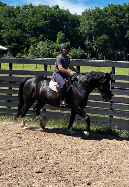 ONLINE AUCTION PLACE YOUR BIDS AT PLATINUMEQUINEAUCTION DOT COM $3500 STARTING BID AUCTION ENDS JUNE 30TH Introducing Moonshine! A stunning 9yr 16.3h Shire x QH cross gelding with a one-in-a-million brain! Calm, sweet, and comfortable push ride. Moonshine has years of experience fox hunting and doing guided beach trail rides with beginner riders. He is accustomed to riding around traffic, bicycles, dogs, and water. Moonshine loves schooling cross country and going to hunter paces to jump all the things…ditches, banks, coops, logs, rock walls, etc. He has a smooth, flat jump that is easy for riders starting over fences. Moonshine is easy to load, haul, tie, bathe, trim, etc. He has a scar on his neck from being bit by a stallion as a baby. It has been evaluated by the vet and does not bother him. Moonshine is a barefoot easy keeper with no vices or maintenance. He turns out in a mixed herd and keeps a clean stall. He is up-to-date on shots, Coggins, floating, deworming, sheath cleaning, and hoof trimming. If you’re looking for a large all-around draft cross to trail ride, jump, or fox hunt, don’t miss out on this awesome horse! Moonshine is located in Ocala, Florida and shipping can be arranged anywhere in the country. Please call Rachel with Show Me Sport Horses at 352-467-5695 with any questions. Located in Ocala, FL.