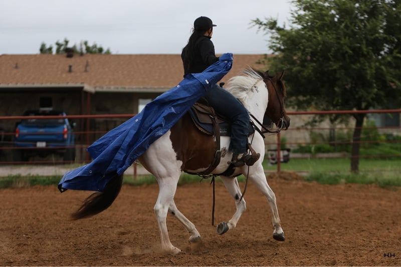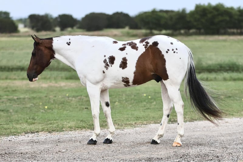 ONLINE AUCTION Place your bids at www.PlatinumEquineAuction.com Starting Bid $3500 Auction ends July 7th, 2024 Need a new saddle? Check out White Rock Saddles on our website or Facebook! Bandit is an 9 year old Grade Paint gelding that stands at 14.1 hands. Bandit will steal your heart with his amazing personality and calm disposition. He is gentle and kind with an adorable puppy dog personality. He comes running to you from the far end of the pasture just for some love, no treats needed to catch this guy! Bandit is a gentleman on the ground and in the saddle. He has a very smooth trot and lope that’s easy to sit. He will neck rein or direct rein. He is happy to collect and move a little slower or extend his gaits and cover some ground. Bandit does well being ridden by himself or with other horses. He has been ridden around cattle, gone on long distance trail rides, and gone to some play days. He will make an excellent all around horse that will quite literally go all day long. He is very consistent and does well with time off. Bandit stands stands tied nicely to be groomed, saddled, and bathed. He has been seen by our vet, farrier, dentist, and chiropractor recently and was an outstanding citizen for all. He loads on and off the trailer nicely. New sights do not bother him and he’s able to think through scary situations quite well. He has no vices that I’ve come across, does well in and stall or outside and is happy to be by himself or with other horses. Bandits personality makes him so fun to be around, he loves to be loved on and will always be happy to be with you. For more information and any questions you may have about Bandit, please call Sydney with SRS Training and Sales 518-935-8282. Bandit is located in Granbury, TX. ONLINE AUCTION Place your bids at www.PlatinumEquineAuction.com Starting Bid $3500 Auction ends July 7th, 2024 Need a new saddle? Check out White Rock Saddles on our website or Facebook!
