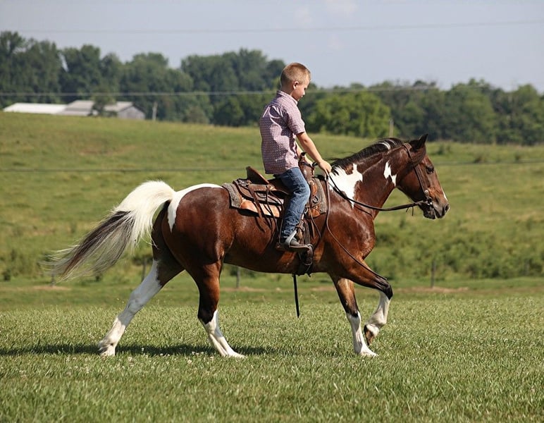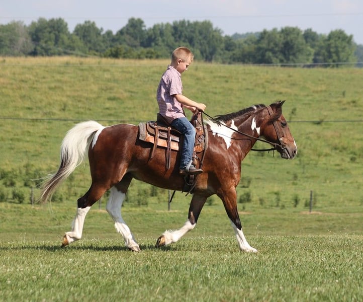 ONLINE AUCTION Place your bids at www.PlatinumEquineAuction.com Starting Bid $3500 Auction ends July 28th, 2024 Need a new saddle? Check out White Rock Saddles on our website or Facebook! Everyone meet JoJo. JoJo is a 10 year old sharp little bay and white tobiano pony gelding standing 12:1 hands tall! JoJo has spent all of his life in the hills of Tennessee being ridden by the children. I purchased JoJo off a really good friend of mine and his children had outgrew him. But don’t let his size fool you, he has a heart the size of Texas! In the mean time JoJo has been my 6 year old nephews main trail mount all summer. We have ridden him all over the big south fork where he has seen steep hills and deep creeks. He watches where he’s going and doesn’t get in a hurry. He crosses creeks, logs and ditches with ease. He has a nice smooth walk, trot, and short lope and rides around like daddies big horse! JoJo is a good step-up horse for the kids that have own-grown their “pedal ponies”. He stands to be tacked up and mounted. He stands like a statue for the farrier. He loads, hauls and bathes like he’s supposed to. If you’re looking for a step up pony for your children, don’t hesitate to give me a call about JoJo! Call Trevor Patrick 606-516-8069 Located in Parkers Lake, KY. ONLINE AUCTION Place your bids at www.PlatinumEquineAuction.com Starting Bid $3500 Auction ends July 28th, 2024 Need a new saddle? Check out White Rock Saddles on our website or Facebook!