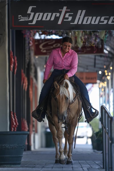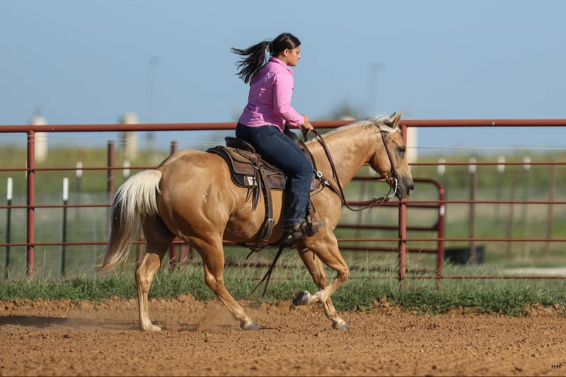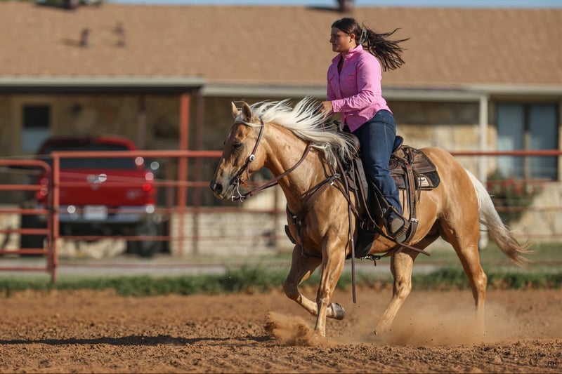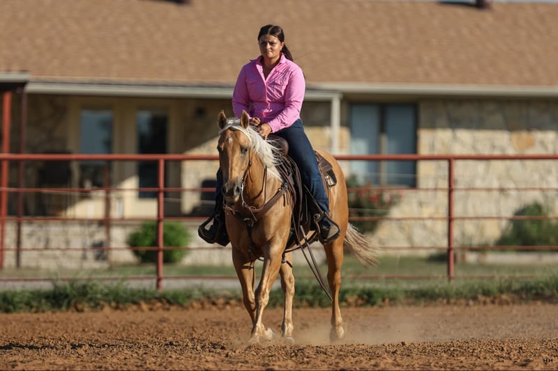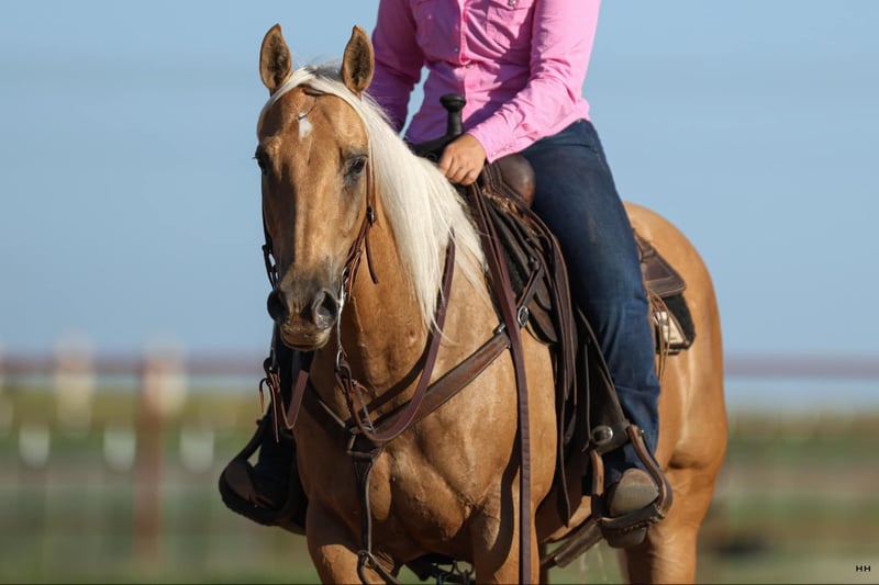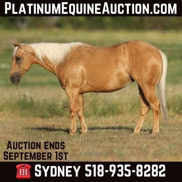 ONLINE AUCTION Place your bids at www.PlatinumEquineAuction.com Starting Bid $3500 Auction ends September 1st, 2024 Need a new saddle? Check out White Rock Saddles on our website or Facebook! Brandi has the looks, athleticism, and honest mind that everyone is looking for. Standing at 14.1HH she is small in height but built like a brick house. Brandi is a Registered Quarter Horse mare that will bring attention to any crowd. I personally like to call her my “Barbie Dream Horse”. She is a stunning Golden Palomino color with a pretty mane and tail that will certainly get you noticed. Brandi not only has the looks but she is so BROKE too. Brandi primarily has a reining background which shows in how well she moves off your seat and legs. Just check out her bridless work, she was absolutely incredible! Brandi walk, trot, lopes nicely in both directions on a loose rein. She picks up both leads at a lope and will give you a slow jog if asked. Brandi has an incredible stop and a nice turn around. She softens to the bit very nicely and you can move any part of her body when you wish with just leg or seat pressure. She is very athletic and could have a career in something like ranch versatility or breakaway roping but could easily become someone’s favorite weekend trail mount as well. The opportunities with this mare are almost endless because of her excellent foundation and kind, honest mind. Brandi has been seen recently by my dentist, chiropractor, and farrier and was an excellent citizen for all. Brandi ties nicely at the barn or the trailer to be groomed, saddled, and bathed. She is okay with being pulled away from the herd to be saddled and rode alone or is okay in a group as well. She trailers quietly and will even be sent on the trailer with just a point of your hand, and backs off automatically. Brandi has no vices in or out of her stall. She is such a nice mare to be around and isn’t marish at all. Brandi has the grit and drive that so many people love about mares but has the willingness to just listen to what’s asked of her like a gelding. For more information or questions about this gorgeous mare please contact Sydney with SRS Training and Sales at (518) 935-8282. Brandi is located in Granbury, TX and I’ll be happy to help arrange shipping anywhere in the US. ONLINE AUCTION Place your bids at www.PlatinumEquineAuction.com Starting Bid $3500 Auction ends September 1st, 2024 Need a new saddle? Check out White Rock Saddles on our website or Facebook!