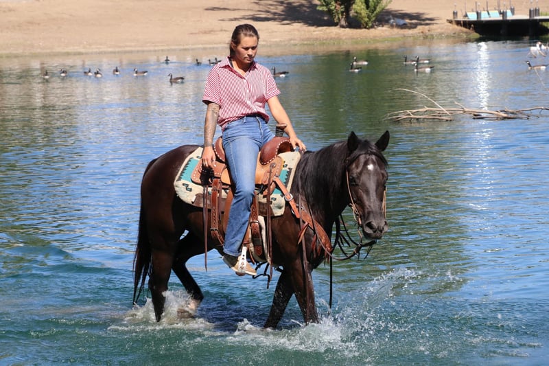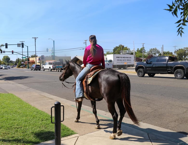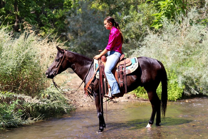 ONLINE AUCTION Place your bids at www.PlatinumEquineAuction.com Starting Bid $3500 Auction ends September 22nd, 2024 Need a new saddle? Check out White Rock Saddles on our website or Facebook! Meet 007 aka Seven is a 10 year old 14.2 hand gelding. If you’re looking for SAFE for the whole family and very broke here he is! Seven is very handy broke but also safe for the little ones to jump on and cruise around. He neck reins, moves off your legs, spins, slide stops. Seven has a nice slow easy canter that’s easy for the kids and for backs. He is more woah than go but can have go if asked for it. Seven is the sweetest boy I sit on the ground while he eats and just hang out with him or sit on him and lay down he’s just our littler jungle gym. I have left him in a stall not touched and pull him out and jump on halter and bareback and lope circles and he’s the same horse so matter what day you pull him out. He’s a saint on the trails. He has seen wildlife jump out, bikers, strollers,cars, traffic,etc. Seven has been in town through all the chaos you can think of without a blink of an eye. Been through the drive through, tight situations without getting nervous, he remains as calm as ever is a stressful situation no matter if your nervous he doesn’t care. I have ridden him next to very busy highways with semis, trailers banging around and he doesn’t care or people honking horns next to him. Seven has also done the obstacles without a blink of an eye. If you looking for a horse for your whole family to enjoy and cruise around Seven is your guy. He’s stunning and calm as ever. He stands to be bathed, saddled, groomed. He loads in the trailer and will unload on busy streets. He is UTD on shots ,teeth, wormimg. Feel free to contact KW Ranch and Performance Horses Kamryn 530-852-2032 if you have any questions about this boy please watch his whole video and read whole ad before messaging. Located in Pleasant Grove, CA. ONLINE AUCTION Place your bids at www.PlatinumEquineAuction.com Starting Bid $3500 Auction ends September 22nd, 2024 Need a new saddle? Check out White Rock Saddles on our website or Facebook!