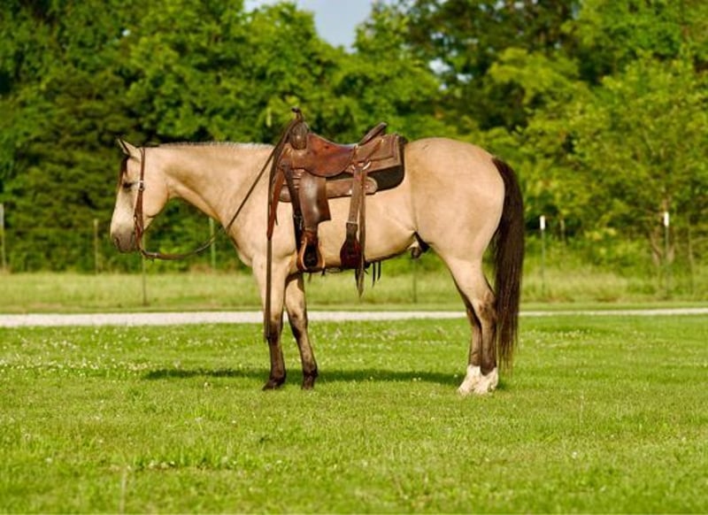 ONLINE AUCTION PLACE YOUR BIDS AT PLATINUMEQUINEAUCTION DOT COM $3500 STARTING BID AUCTION ENDS JUNE 30TH Ace is a beautiful 10 year old aqha registered buckskin gelding that stands 14.3 hands tall and has great conformation. He has been trail ridden absolutely everywhere! He goes anywhere and crosses anything you point him at. He is quiet on the trail and rides out great alone or in a group and doesn’t care if he is in the front middle or back. He is traffic safe and has been around all types of farm animals and wildlife. He has been on many overnight trips and does great! Ace also does great in the arena and would excel in the ranch riding classes if you choose to take him that way He is an honest good minded gelding and does well with time off. He is a blast to ride and loves to please! -no spook -no buck -no bite/kick -Loads/Unloads great -stands good for farrier -stands good for clipping -does great in a stall or out on pasture -does well with other horses -utd on worming and dental work -100% sound -no old injuries or scars Any other questions feel free to give me a call or text Beau Slaughter 573-303-4087 Located in Canyon, TX.