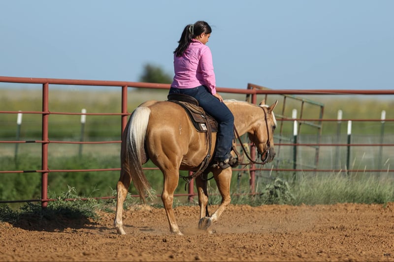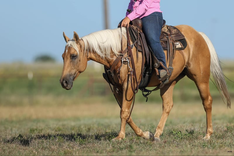 ONLINE AUCTION Place your bids at www.PlatinumEquineAuction.com Starting Bid $3500 Auction ends September 1st, 2024 Need a new saddle? Check out White Rock Saddles on our website or Facebook! Brandi has the looks, athleticism, and honest mind that everyone is looking for. Standing at 14.1HH she is small in height but built like a brick house. Brandi is a Registered Quarter Horse mare that will bring attention to any crowd. I personally like to call her my “Barbie Dream Horse”. She is a stunning Golden Palomino color with a pretty mane and tail that will certainly get you noticed. Brandi not only has the looks but she is so BROKE too. Brandi primarily has a reining background which shows in how well she moves off your seat and legs. Just check out her bridless work, she was absolutely incredible! Brandi walk, trot, lopes nicely in both directions on a loose rein. She picks up both leads at a lope and will give you a slow jog if asked. Brandi has an incredible stop and a nice turn around. She softens to the bit very nicely and you can move any part of her body when you wish with just leg or seat pressure. She is very athletic and could have a career in something like ranch versatility or breakaway roping but could easily become someone’s favorite weekend trail mount as well. The opportunities with this mare are almost endless because of her excellent foundation and kind, honest mind. Brandi has been seen recently by my dentist, chiropractor, and farrier and was an excellent citizen for all. Brandi ties nicely at the barn or the trailer to be groomed, saddled, and bathed. She is okay with being pulled away from the herd to be saddled and rode alone or is okay in a group as well. She trailers quietly and will even be sent on the trailer with just a point of your hand, and backs off automatically. Brandi has no vices in or out of her stall. She is such a nice mare to be around and isn’t marish at all. Brandi has the grit and drive that so many people love about mares but has the willingness to just listen to what’s asked of her like a gelding. For more information or questions about this gorgeous mare please contact Sydney with SRS Training and Sales at (518) 935-8282. Brandi is located in Granbury, TX and I’ll be happy to help arrange shipping anywhere in the US. ONLINE AUCTION Place your bids at www.PlatinumEquineAuction.com Starting Bid $3500 Auction ends September 1st, 2024 Need a new saddle? Check out White Rock Saddles on our website or Facebook!