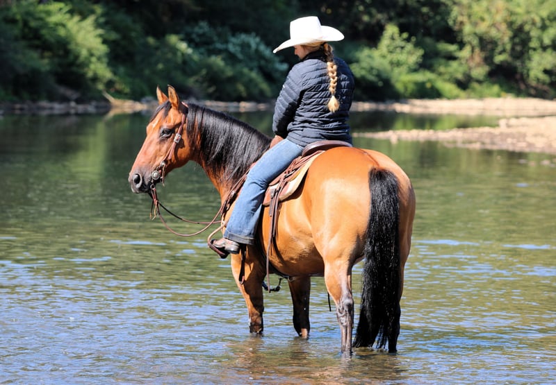 🍁𝒕𝒉𝒆 𝐅𝐀𝐋𝐋 𝑺𝒑𝒆𝒄𝒕𝒂𝒄𝒖𝒍𝒂𝒓🍁 Happening now thru MONDAY | SEPTEMBER 22nd - Available EXCLUSIVELY on HorseBid's website! For more details and to register visit: www.Horsebid.com CONSIGNOR CONTACT: Wagner Farms 814-564-2117 LOCATION: Clarion Pa BREED: QH REGISTERED: No COLOR: Buckskin Dun HEIGHT: 14.3 AGE: 11 GENDER: Gelding Rifle is a 11 Year Old Super Good Looking Buckskin Dun Quarter Horse Gelding. He stands 14.3 hands tall and has that old school Quarter Horse stocky built to him. Rifle has been my main trail mount for most of the summer. If you want a super nice trail horse you will look long and hard to find another horse as good on the trails as you will Rife. He goes anywhere you ask him to on the trail and never hesitates. Lots of trail miles under his belt making him very seasoned. Rifle has also done ranch work and is very good when it comes to working cows on him. Rifle will also ride nicely in the arena. He would make a good youth 4h or rodeo horse also. Honestly Rife can go in any direction! He is safe and easy in every way!! You will love his one hand neck rein, good deep spot and side pass. Watch his video and let him speak for himself. Never any buck or rear just saddle up and go enjoy a nice trail ride. I cant say enough good things about ride. If you want to go first class then be sure to bid with confidence on Rifle. We can help arrange delivery anywhere in the United States. Call or Text Glory at 814-564-2117 Thank you and God Bless