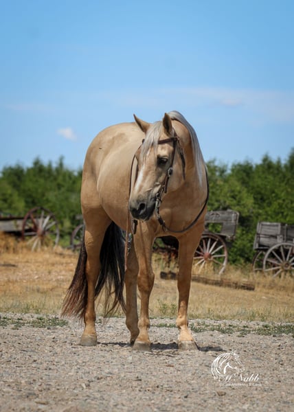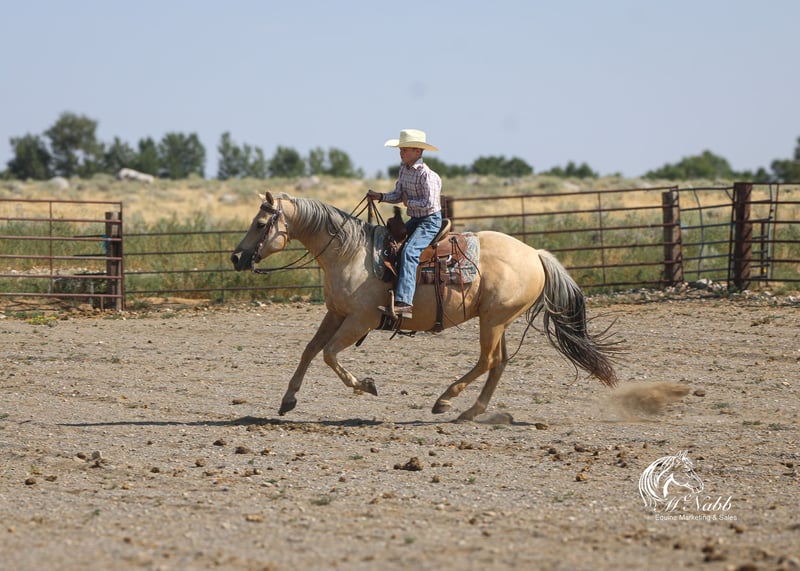 𝕄ℂℕ𝔸𝔹𝔹 𝕃𝕀𝕍𝔼𝕊𝕋𝕆ℂ𝕂's 🍂𝟑𝟎𝟕 𝐅𝐀𝐋𝐋 𝑺𝒑𝒆𝒄𝒊𝒂𝒍🍂 Happening now thru MONDAY | SEPTEMBER 15th - Available EXCLUSIVELY on HorseBid's website! For more details and to register visit: www.Horsebid.com CONSIGNOR CONTACT: McNabb Livestock LLC 307-250-0900 LOCATION: Cody, Wy BREED: AQHA REGISTERED: Yes REGISTERED NAME: Shinenugthreecash COLOR: Palomino HEIGHT: 14.3 AGE: 11 GENDER: Gelding Sackett is the prettiest palomino with a silver mane and tail. He is ones that turns heads and stands out everywhere we take him. He is your trail horse deluxe he has seen miles out on the trail, he knows how to follow a trail or he will go where you point him and he will create a new trail with you through the brush. He has been rode up and down the mountain gathering and pushing cattle. Sackett lopes pretty circles, has a nice stop. He is smooth to ride in all gaits, has a good one handed neck rein. We have used him for all aspects of ranch work, we’ve rode him out by himself a lot, gathered cattle, used him sorting in the corrals and easily works the gates. He has cow sense and will watch one. Sackett takes time off well. Saddles up the same with time off, no nonsense, no warm up needed. He has no vices or bad habits. We have used him to work colts, nothing rattled him even with the colts jumping around and spooking. He is just a good solid citizen that would be an asset to anyone. Sackett is easy to catch. Loads in and backs out of the trailer, hauls well. He has had a basic PPE, up to date on worming, dental and farrier. We welcome you to do your own PPE and to come to the ranch a to meet Sackett. We also are glad to help arrange transportation. We will hold the horses at no charge for a reasonable amount of time to get hauling arranged. For more information call 307-250-0900.