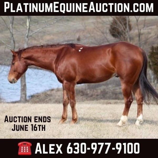 ONLINE AUCTION Place your bids at www.PlatinumEquineAuction.com Starting Bid $3500 Auction ends June 16th, 2024 Need a new saddle? Check out White Rock Saddles on our website or Facebook! Cee Guns Revolution, affectionately known as Pistola, is a 2014 AQHA gelding by NRHA Million Dollar Sire, Einsteins Revolution. Pistola is the perfect partner for someone who wants to have fun at the ranch show on Saturday and take to the trails on Sunday. Pistola was started as a reiner and has gradually transitioned into the world of the weekend warrior ranch horse shows. He’s been shown in the ranch riding rail and pattern classes, ranch reining, and ranch trail classes. Pistola rides like a solid, well broke horse. Soft mouth, easy transitions, spins, pivots, side passes, great cadence, sharp stop, and a balanced mover. One of our favorite things about Pistola is that he is broke enough to help you hone your skills but forgiving enough not to punish you while you’re learning. If the trails are more your speed, he’s got you covered there as well. He’s level headed and surefooted when heading out and loves the change of scenery from the arena. Pistola is great to have in the barn as well. He is quiet and well mannered when inside and absolutely loves playing in the field with his pasture mates when out. He stands like a gentleman to be groomed, tacked, and bathed and stands tied quietly for the farrier. Please reach out to us A&A Farms Alex 630-977-9100 with any questions or to set up a time to meet Pistola in Hardinsburg, IN. ONLINE AUCTION Place your bids at www.PlatinumEquineAuction.com Starting Bid $3500 Auction ends June 16th, 2024 Need a new saddle? Check out White Rock Saddles on our website or Facebook!