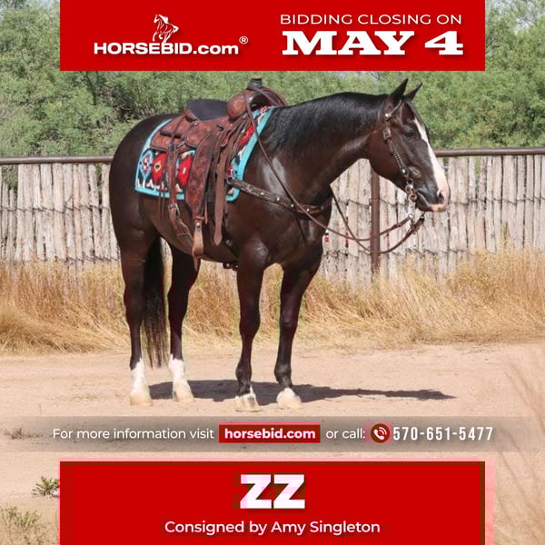 ▪️▫️◾️𝐭𝐡𝐞 𝑴𝒂𝒚 𝐒𝐞𝐥𝐞𝐜𝐭◾️▫️▪️ Happening now thru MONDAY | MAY 4th - Available EXCLUSIVELY on HorseBid's website! For more details and to register visit: www.Horsebid.com CONSIGNOR CONTACT: Amy Singleton 570-651-5477 LOCATION: Calvert, TX BREED: Quarter Horse REGISTERED: Yes REGISTERED NAME: Obsidian Force COLOR: Black Rabicano HEIGHT: 15 AGE: 12 GENDER: Gelding Everyone appreciates a horse that’s put together right—and ZZ checks every box. This striking black rabicano gelding and son of Metallic Cat has that look you don’t forget, the kind that turns heads and earns a second glance every time. Homed at our private facility in Calvert, Texas for you to try, we are proud to offer him on HorseBid.com. He represents a hard-to-find combination of talent, versatility, and disposition, and he is in his prime with a mature mind. ZZ was originally slated for the League of Legends sale, but due to no fault of his own and simply us downsizing our program, he is now being made available to the public - be the lucky one to take him home. ZZ is as well-rounded as they come. Whether you’re looking for a top ranch horse, a competitive arena mount, or a dependable partner to enjoy outside, he’s ready. He’s naturally gentle, kind, and level-headed—safe for beginners, yet still enjoyable for a seasoned rider. He’s been ridden by kids in the cutting and sorting pens as well as out on the ranch, and he stays the same honest, steady gelding even with time off. ZZ has been extensively trained by Sarah & Mozaun McKibben, which shows in every aspect of his ride and handle. He also has a quirky, personable side and is the kind of horse that truly looks for his person—one that wants to be your best friend as much as your partner. When it’s time to go to work, ZZ delivers. Drop your hand on a cow and enjoy the ride—he’s stylish, confident, and knows his job. In the arena he’s broke and responsive; outside, he’s just as reliable. He’s been ridden all over Texas ranch country and through the Arizona desert, handling running water, deep mud, thick brush, rocky terrain, and cactus without hesitation. He’s sure-footed and goes wherever you point him. Under saddle, he’s smooth and comfortable with a natural “whoa” mindset. Think stop, and he’s there. He’s easy to guide with correct spins, clean lead changes, and a strong stop. His jog is slow and easy to sit all day, and his lope has that soft, rocking-chair feel. When asked to move out, he has a solid extended trot that can cover country. ZZ has also been roped on in the arena and out in the pasture. He rates naturally, finds his spot, and makes your timing easy. He carries zero nervous energy and gives you confidence to handle whatever job is in front of you. He’s as broke and trustworthy as they come—he’s been ridden bridleless through town, has gone through the drive-thru to pick up orders, and has even stood quietly outside the store while we stepped in, showing the kind of mind and patience that’s hard to find. What truly sets ZZ apart is his rarity. He is a black rabicano and a direct son of Metallic Cat—the leading NCHA & NRCHA sire. Metallic Cat earned $637,711 in NCHA, was the NCHA Open Futurity Champion and Horse of the Year, and has produced over $40 million in offspring earnings. Out of more than 3,372 AQHA foals, only 20 have been black—less than 1%—making ZZ part of an extremely limited group. Beyond pedigree and ability, ZZ is simply easy to own. He’s user-friendly, dependable, and enjoyable every time you saddle him. He loads, stands tied, and is great for the farrier, and he is up to date on all vaccinations and worming. We are happy to assist with shipping arrangements nationwide. He’s been a pleasure to have, and we know his next owner will feel the same.