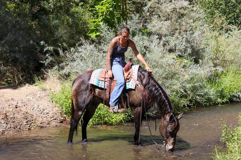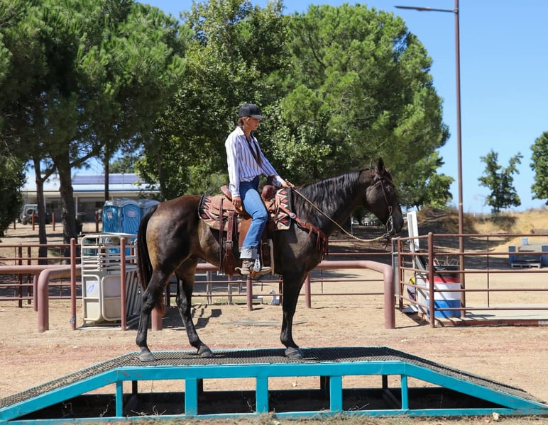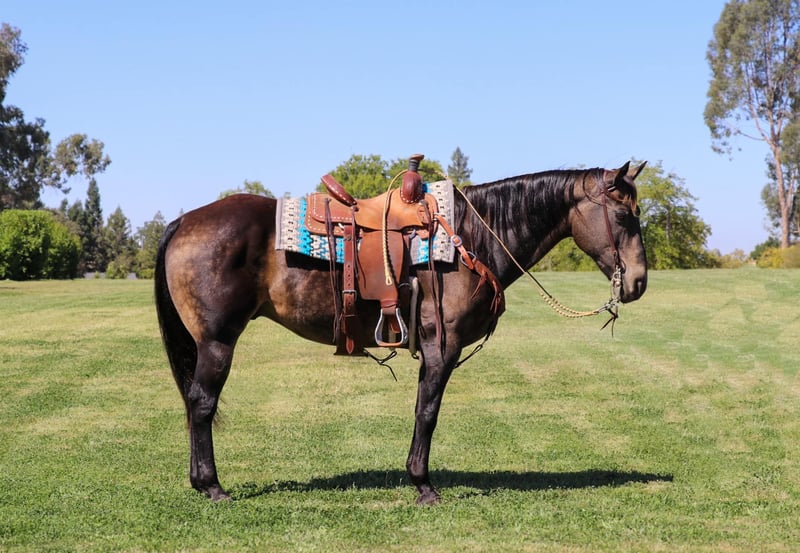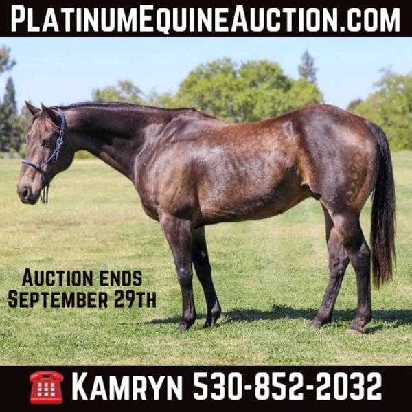 ONLINE AUCTION Place your bids at www.PlatinumEquineAuction.com Starting Bid $3500 Auction ends September 29th, 2024 Need a new saddle? Check out White Rock Saddles on our website or Facebook! Meet Banks, 10 year old 15 hands the most stunning sooty buckskin horse you’ll ever see! His dapples stand out in any setting, and his versatility is second to none. If you’re looking for an all-around horse that can do it all, Banks is your guy. Banks is a seasoned professional with experience in the arena, on trail rides, navigating obstacles, roping, and gymkhanas—he’s done it all! He is exceptionally well-trained and light in the face, so much so that you can ride him with just a finger on the reins. Banks is incredibly responsive to cues, making him a breeze to ride. He has a great stop, a super smooth spin, knows his leads, and offers an unbelievably comfortable trot and canter. A true trail veteran, Banks has spent his life working in the mountains and understands what it means to put in a day’s work. As Banks has worked his whole life he does have a big strided walk he’s not a dead head but it’s hot just strides out. He is sure-footed and confidently tackles any terrain—whether it’s steep hills, logs, creeks, ponds, mud, or slippery creek rocks, Banks handles it all like a champ. He’s a master of obstacles, easily navigating teeter-totters, bridges, swinging bridges, water pools, noodles, and more. Banks is as dependable as they come; you can leave him off for a week or even a month, and he will be the same steady horse every time you pull him out. He’s also traffic-safe and unfazed by cars or semis zooming by, even along busy highways. He’s even been ridden into town to grab a coffee—nothing rattles this horse! This is the horse I rely on for any task, whether it’s gathering cows, going for a relaxing trail ride, or handling stressful, tight situations. Banks remains calm and collected, making him the perfect partner for any rider who wants a reliable and versatile companion. If you want a horse that truly does it all, look no further than Banks. Don’t miss the chance to own this exceptional gelding! Feel free to contact us for any further questions at KW Ranch and Performance Horses Kamryn 530-852-2032. Located in Pleasant Grove, CA. ONLINE AUCTION Place your bids at www.PlatinumEquineAuction.com Starting Bid $3500 Auction ends September 29th, 2024 Need a new saddle? Check out White Rock Saddles on our website or Facebook!